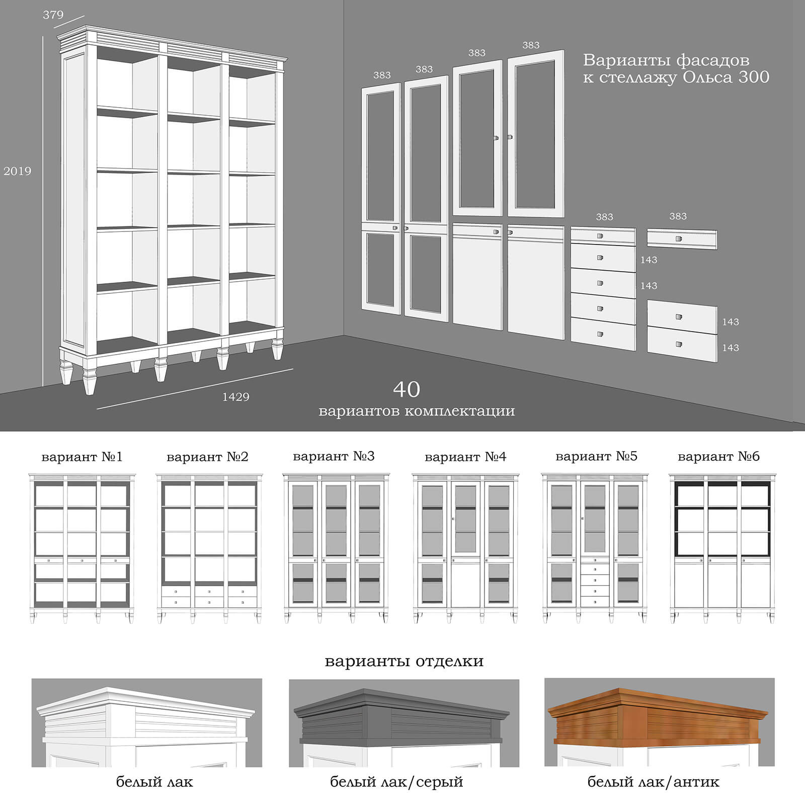 Стеллаж Ольса-303/006 Белый лак + антик №24
