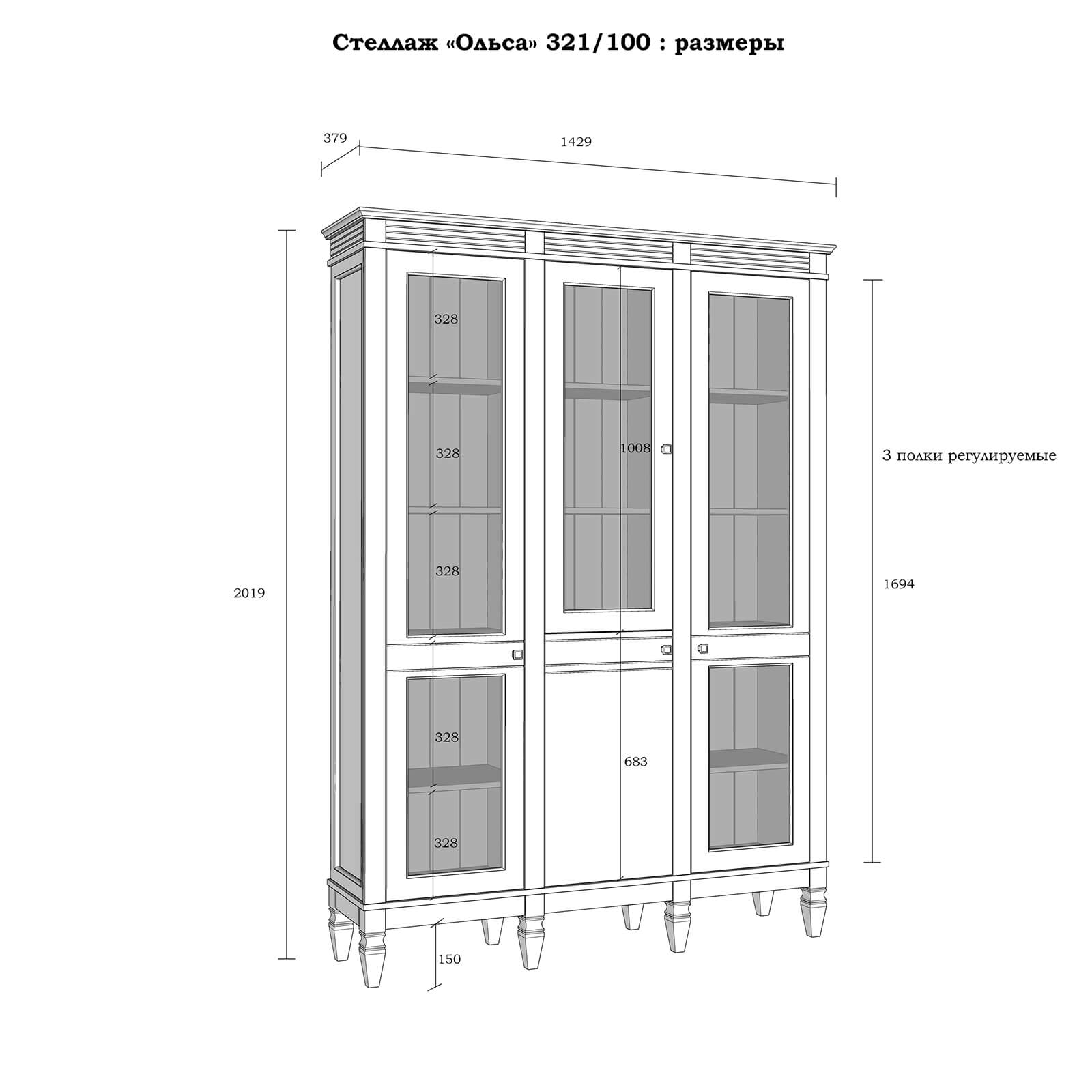 Стеллаж Ольса-321/100 Белый лак + антик №24 — Цена 80131 руб