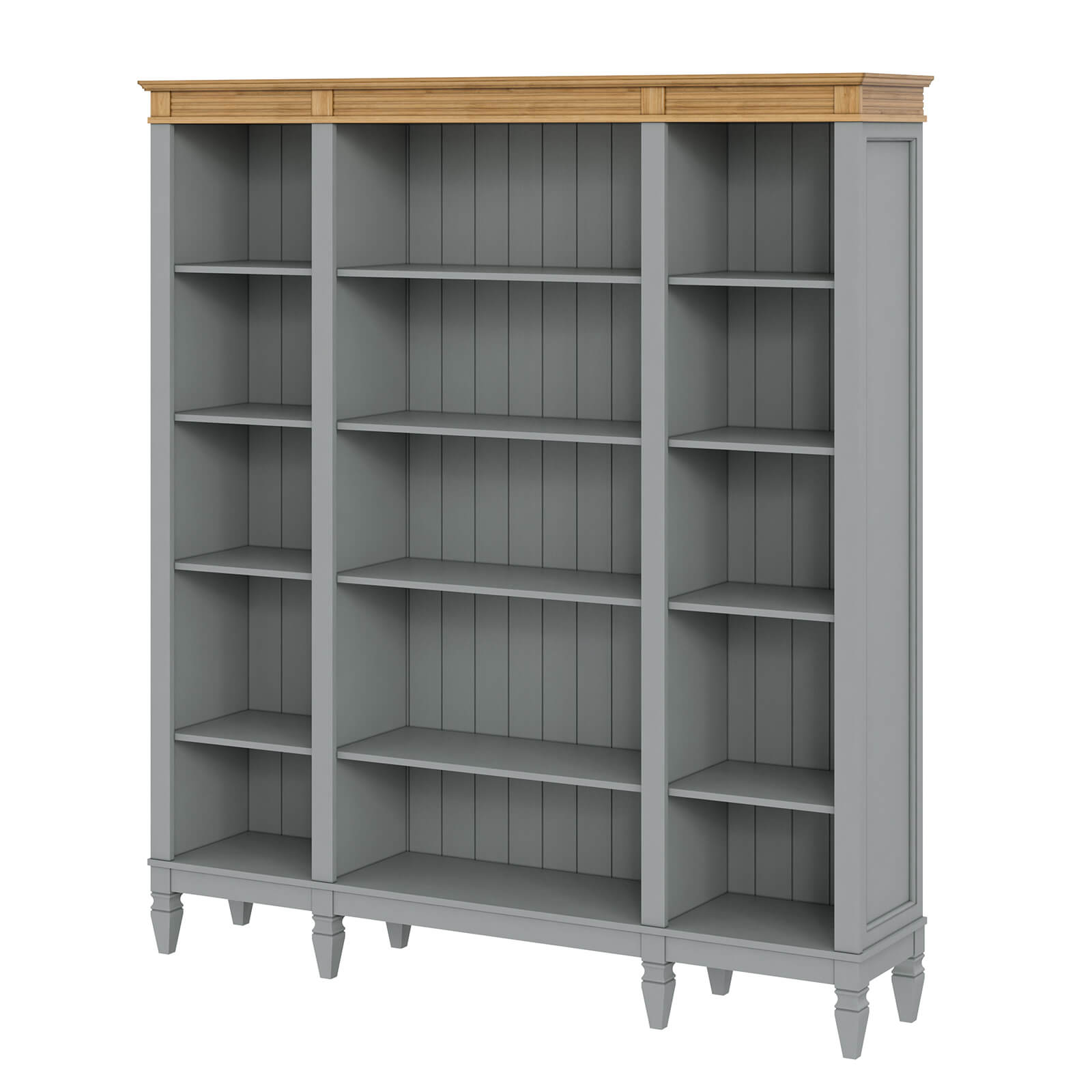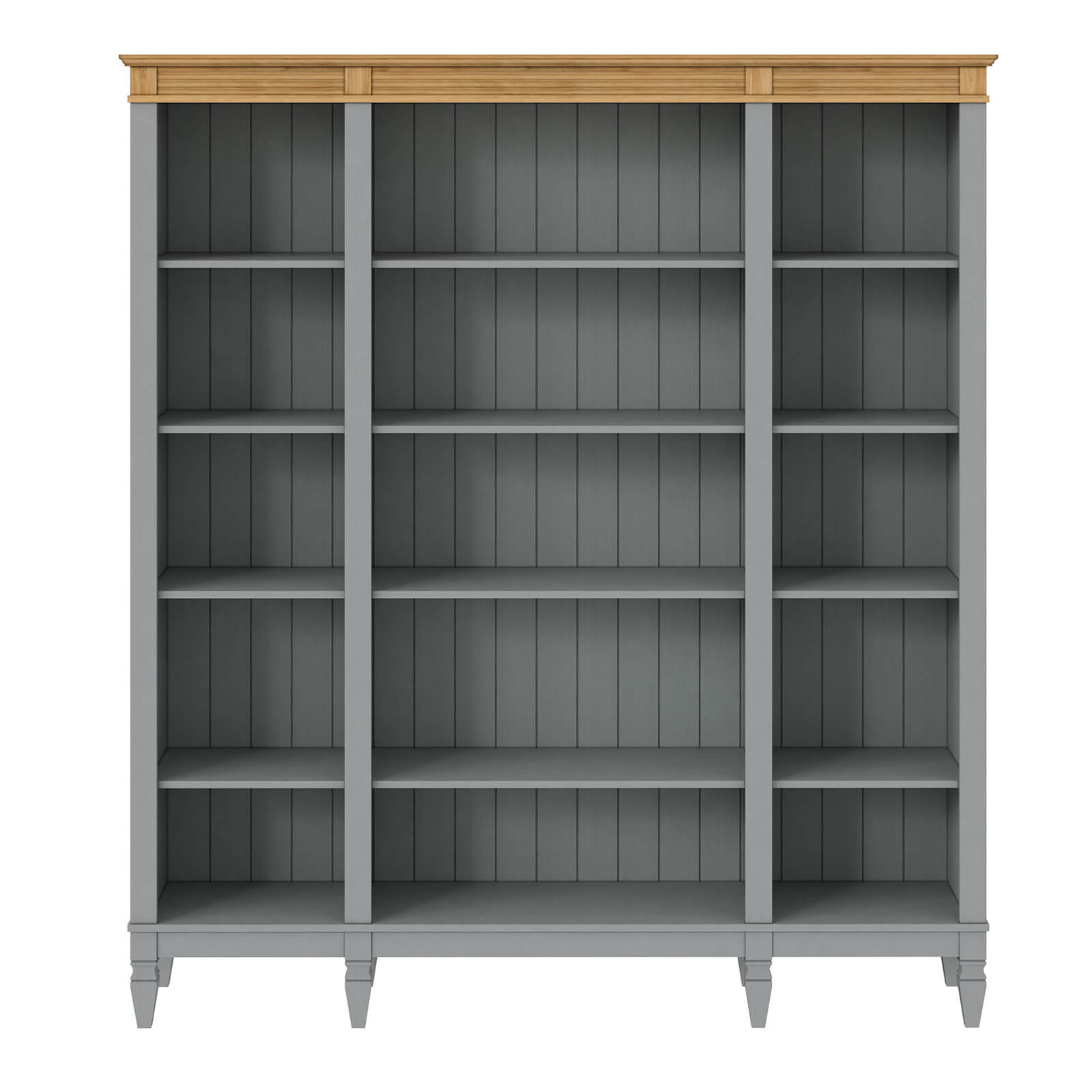 Деревянный стеллаж из сосны / кухонный буфет Ольса-400/000 серый №7042 + антик №24 массив сосны 3 вертикальные секции , в каждой по 4 полки.