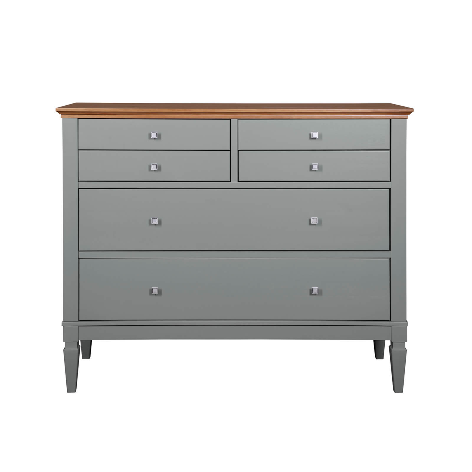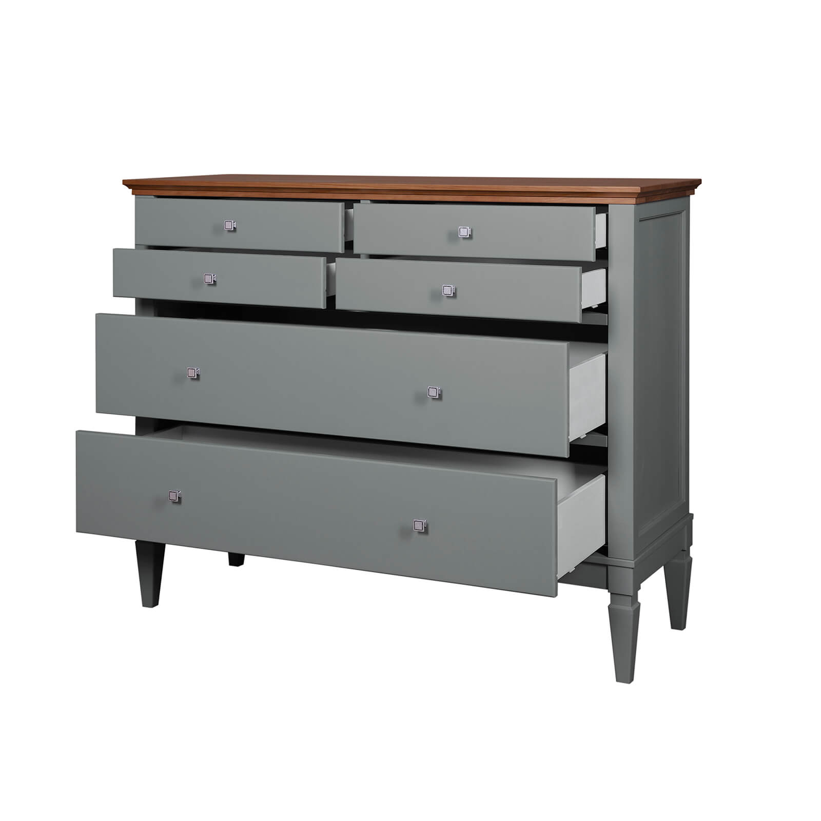 Комод Ольса-042 серый №7042 + антик №24 с 6 ящиками различной вместимости, изготовлен из соснового массива.
