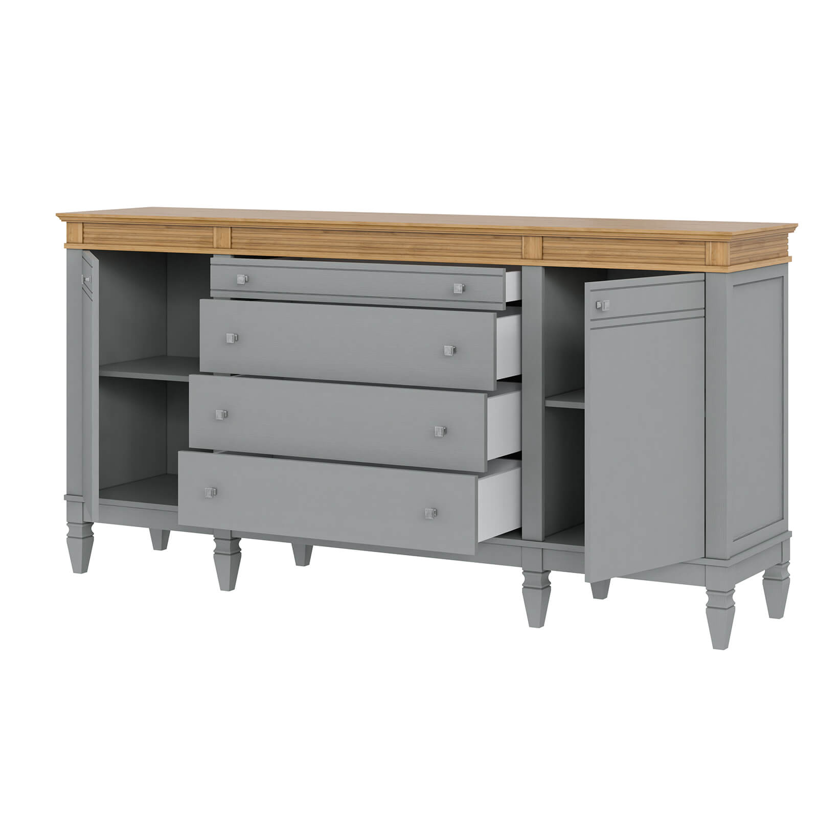 Комод Ольса 424 Серый №7042 + антик №24 , 4 ящика,  2 двери и 2 внутренних полки, изготовлен из соснового массива.