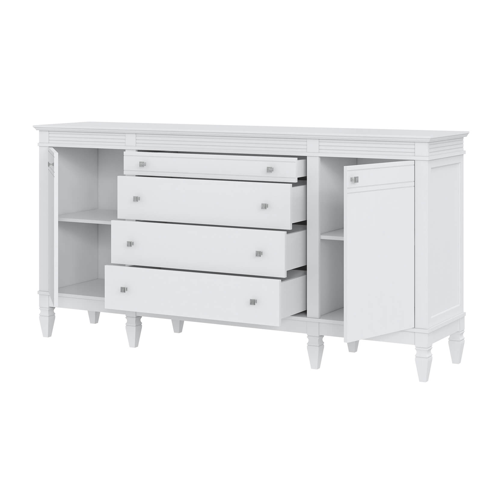 Комод Ольса 424 Белый лак , 4 ящика,  2 двери и 2 внутренних полки, изготовлен из соснового массива.
