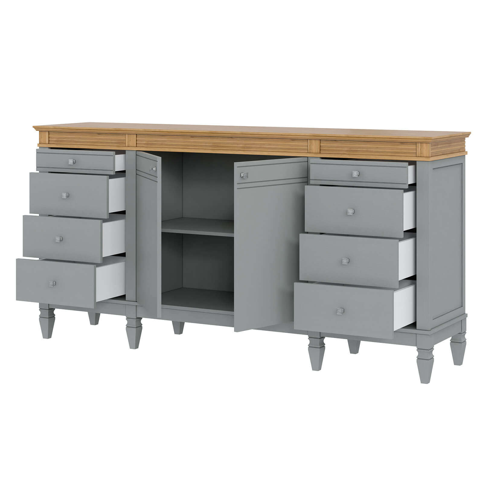Комод Ольса 428 Серый №7042 + антик №24 , 8 ящиков, 2 двери и внутренняя полка, изготовлен из соснового массива.
