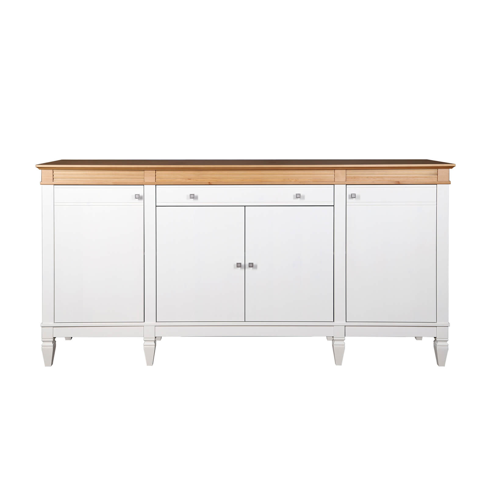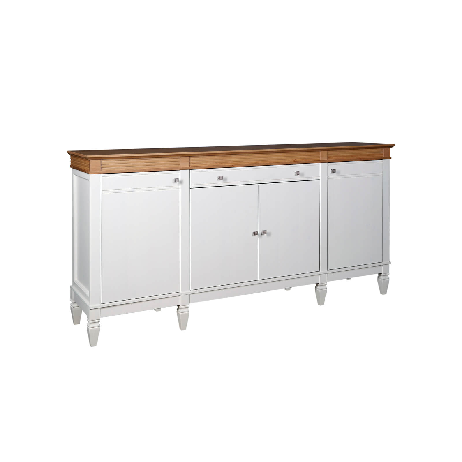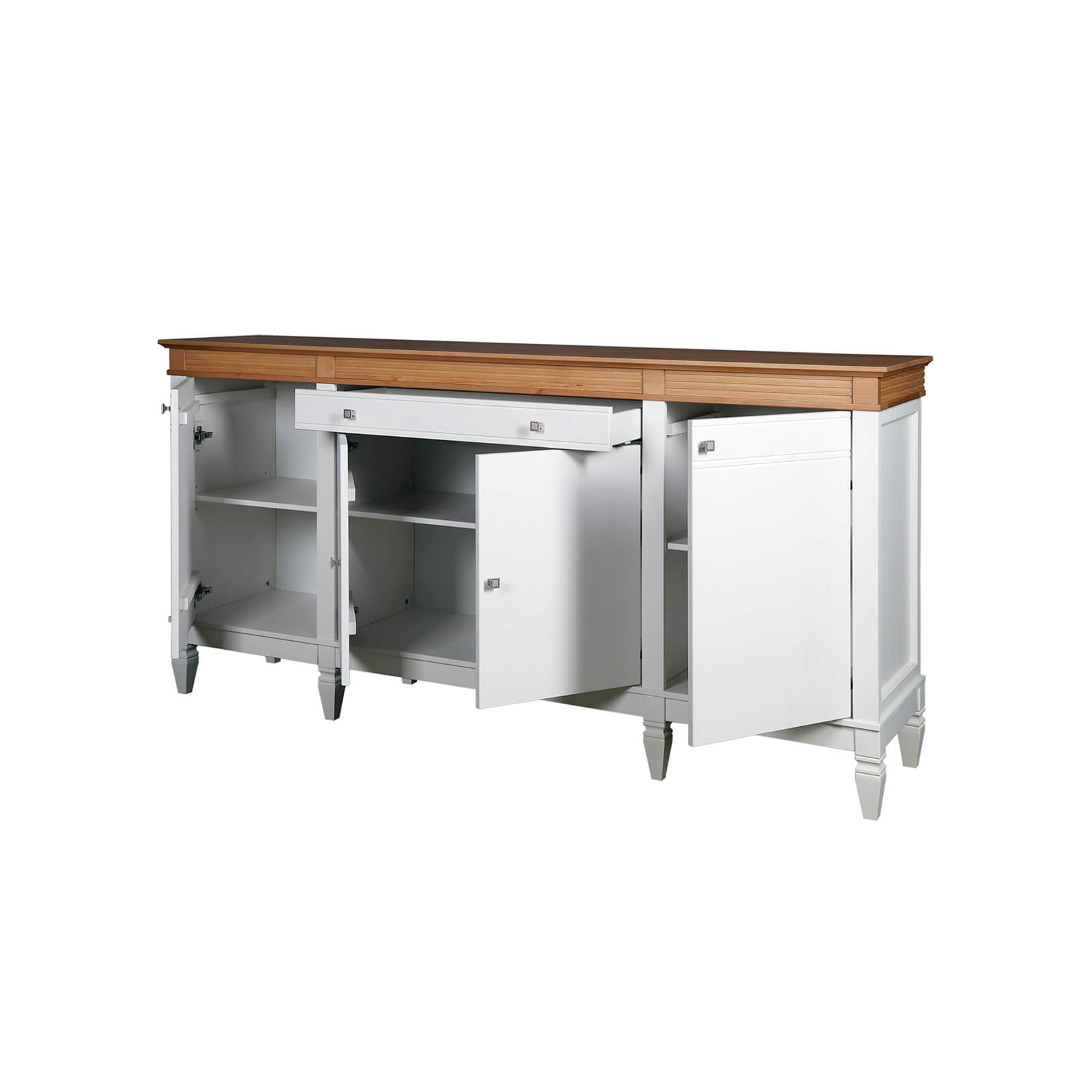 Комод Ольса 441 Белый лак + антик №24, 1 ящик по центру,  4 двери и внутренняя полка в каждом отделении, изготовлен из соснового массива.