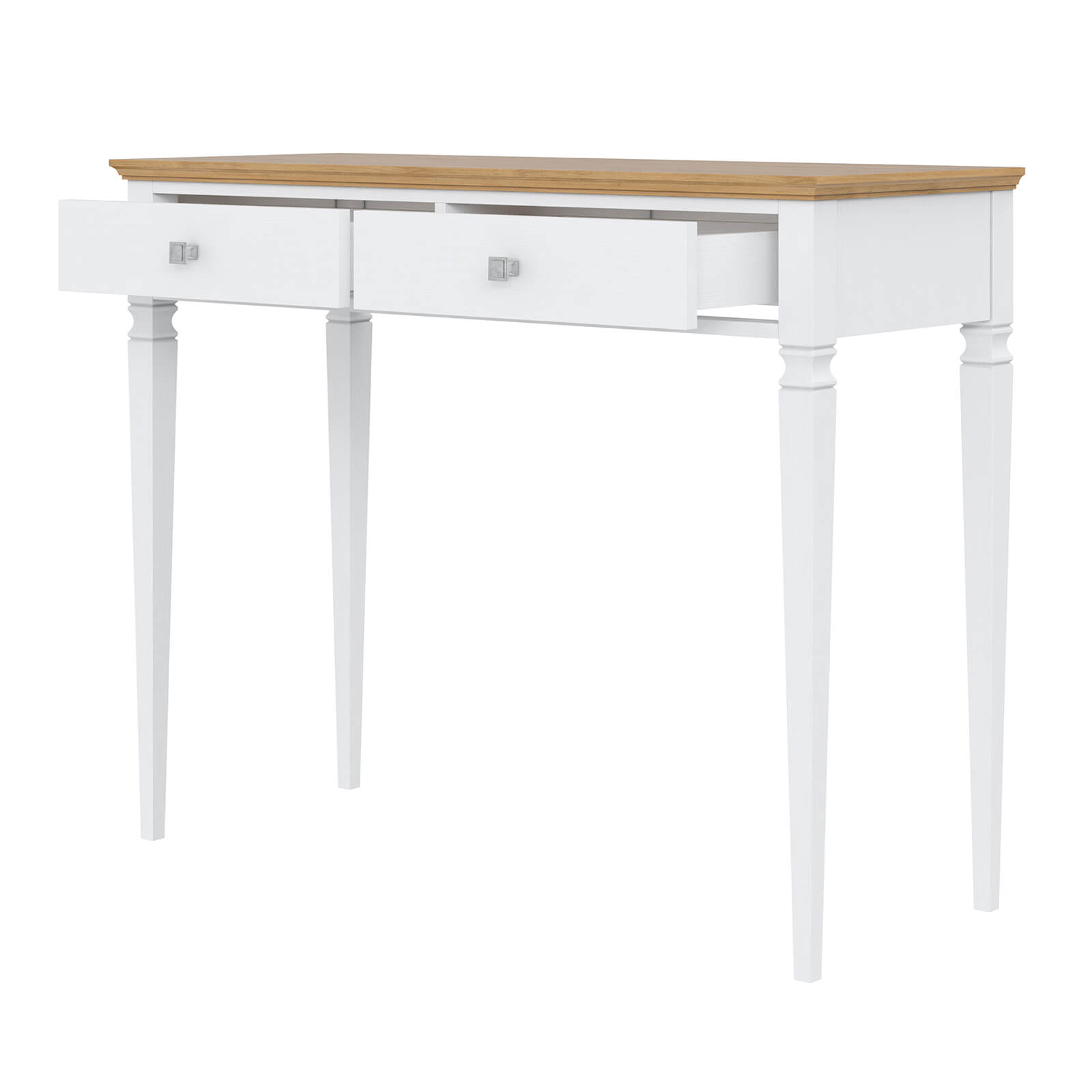 Консоль Ольса-02 (1000) Белый лак + антик №24 - 2 ящика - изготовлена из массива сосны.