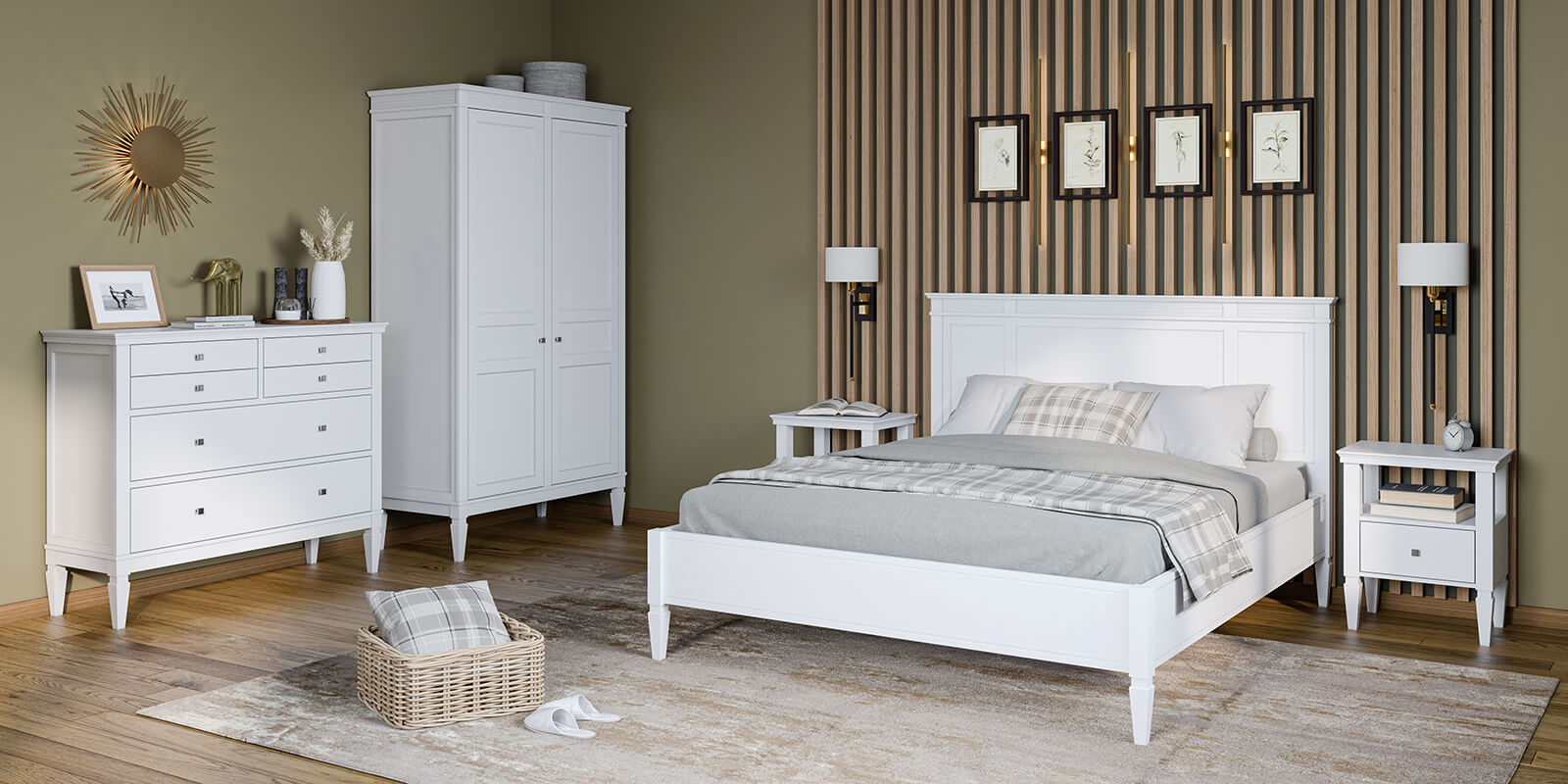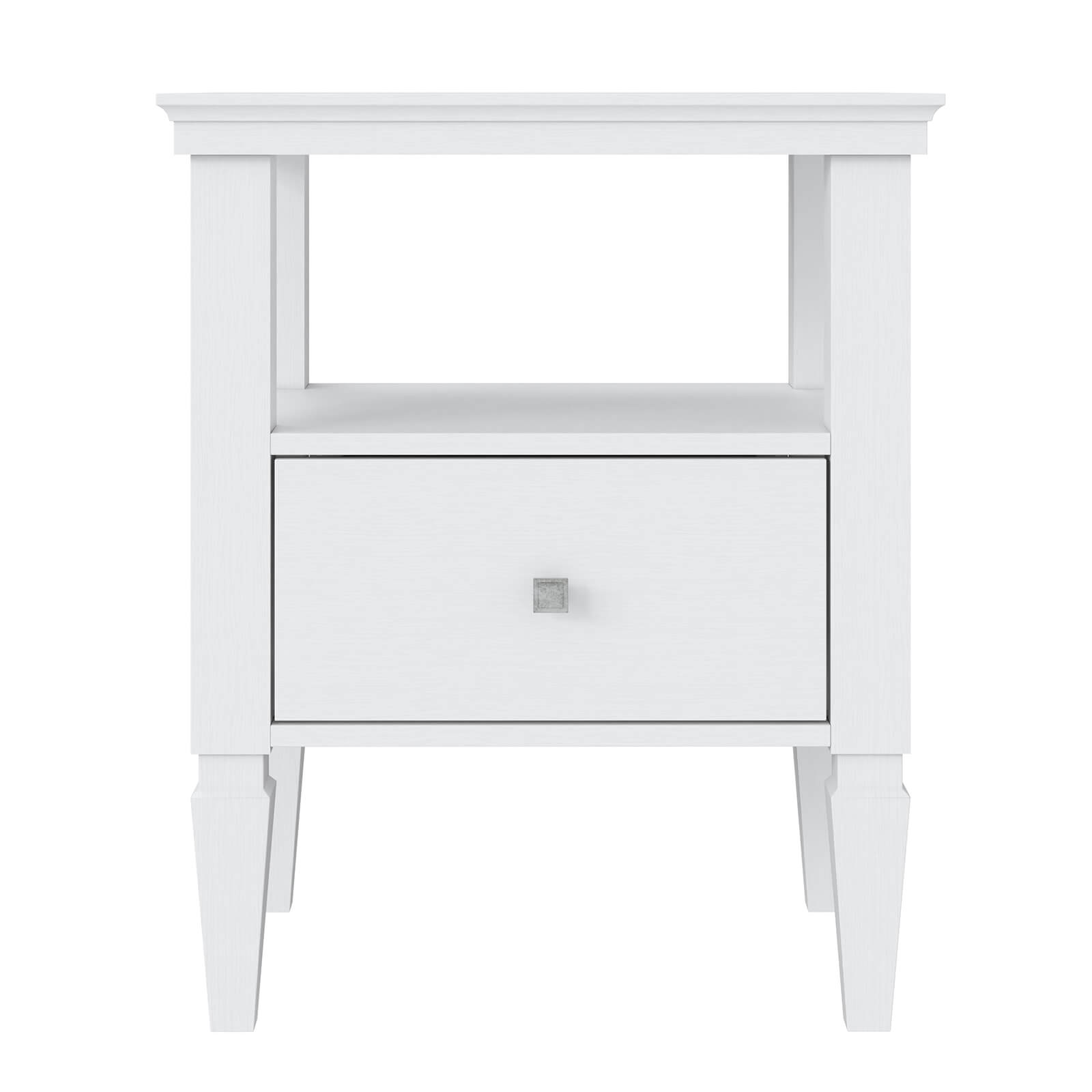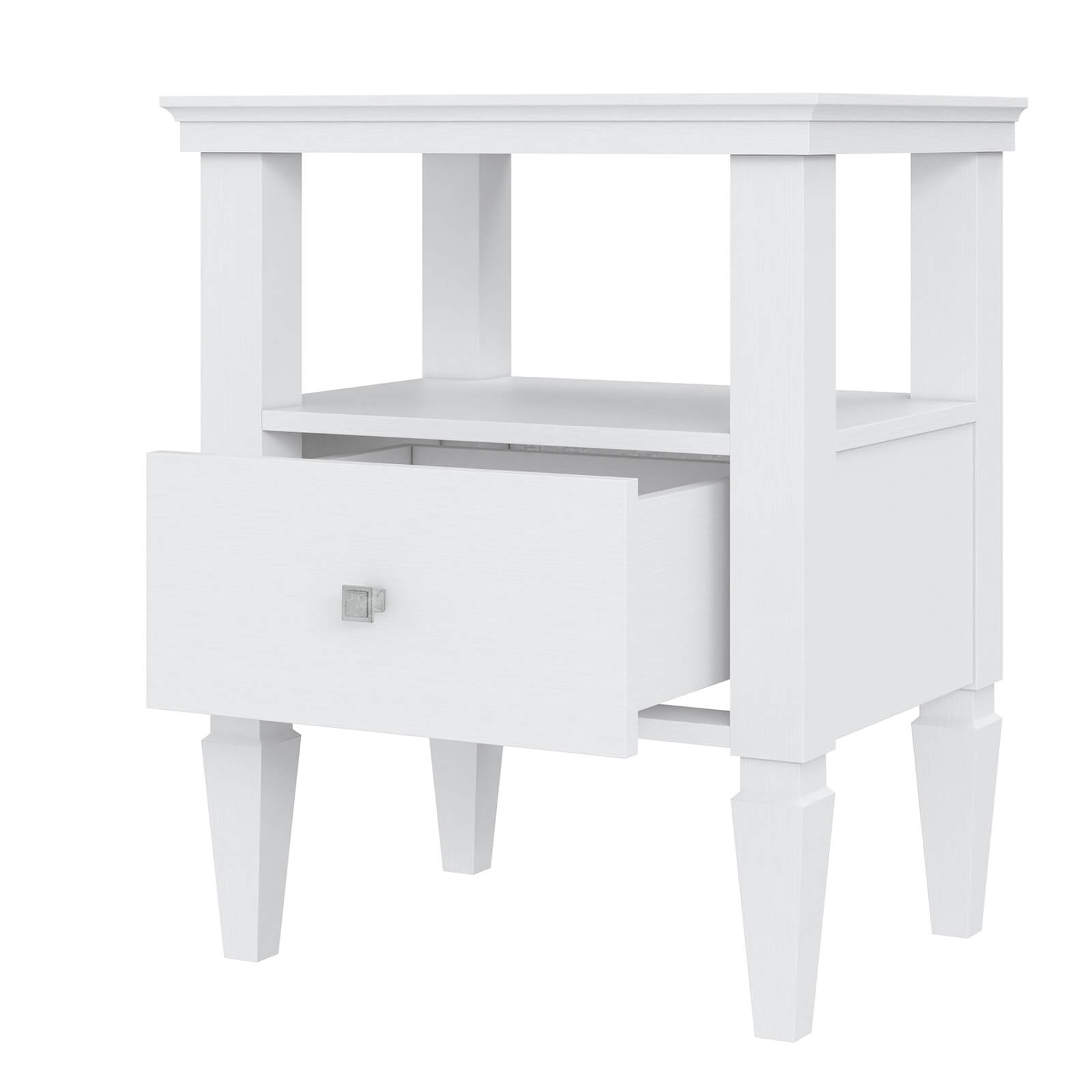 Тумба прикроватная Ольса 01 с открытой верхней нишей и ящиком под ней, изготовлена из соснового массива - покрытие - белый лак.
