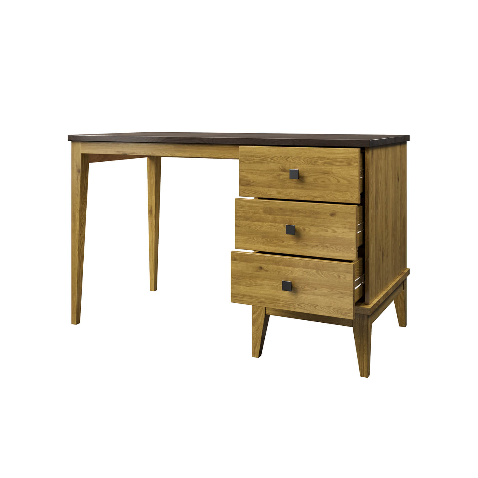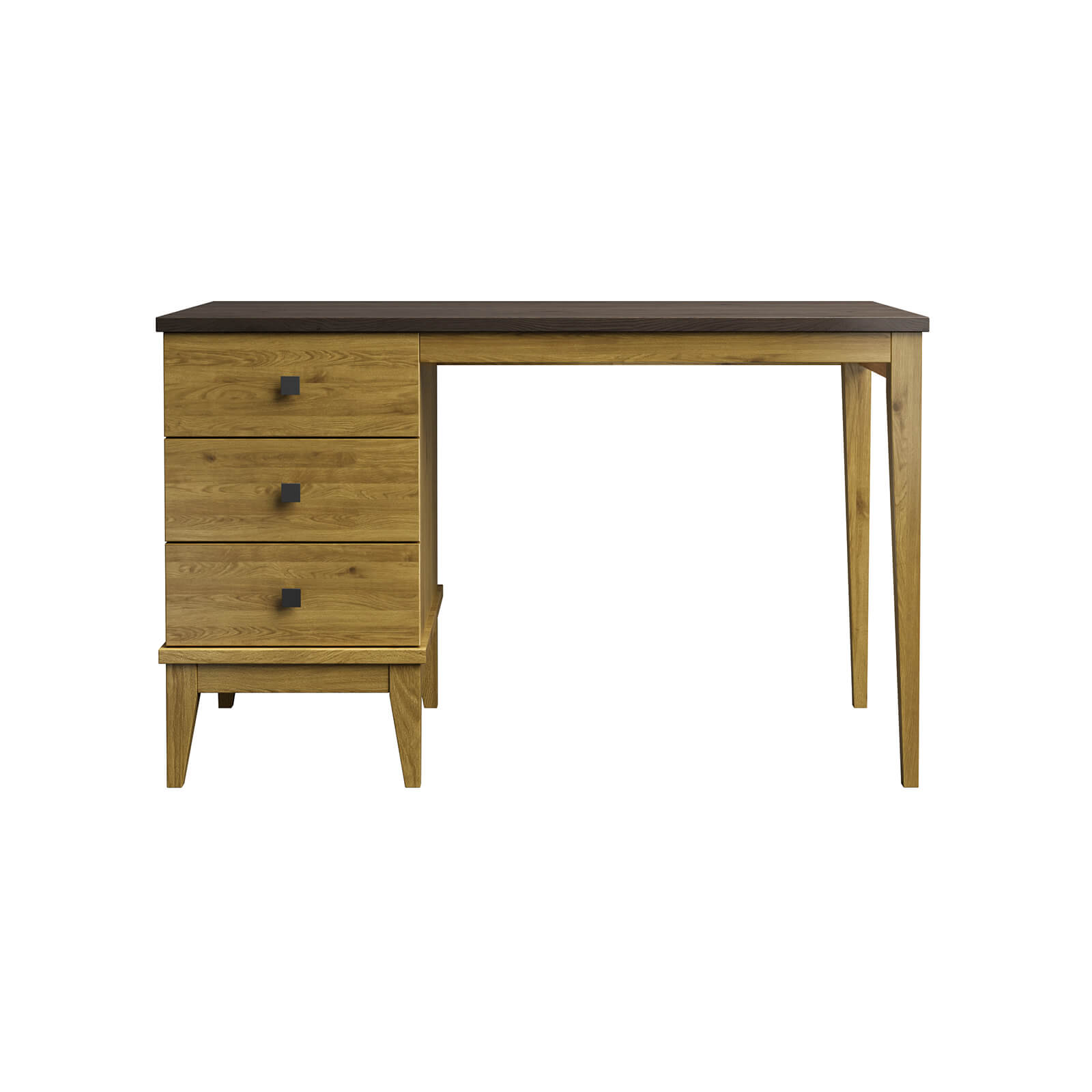 Небольшой одно тумбовый письменный стол с тремя ящиками. Тумба относительно столешницы при сборке может быть расположена справа или слева.