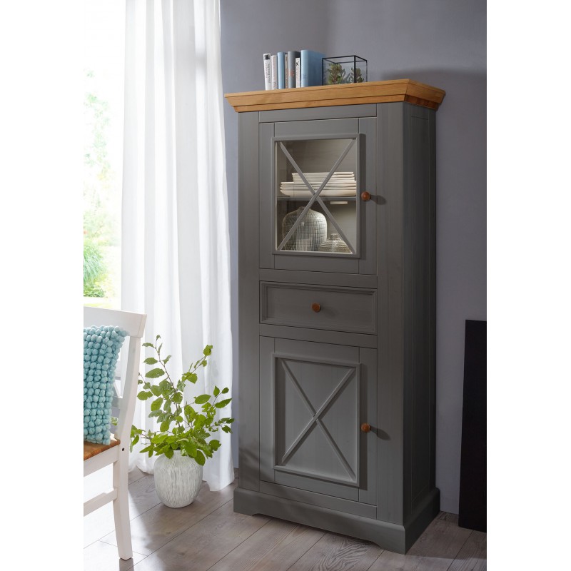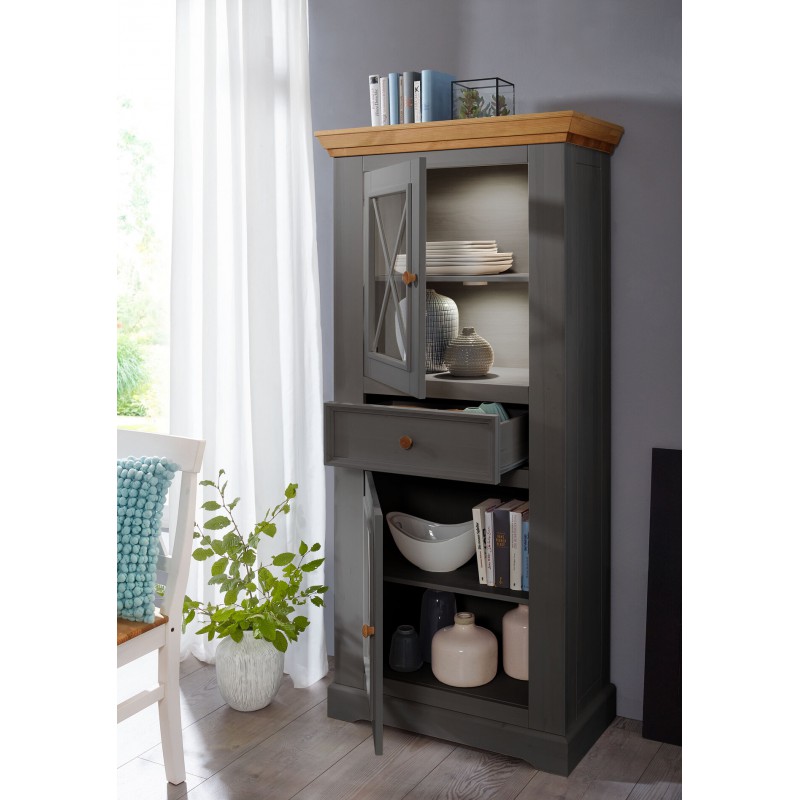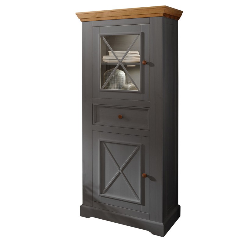Шкаф для посуды Форест 2 двери 1 ящик серый 7012/бейц-масло