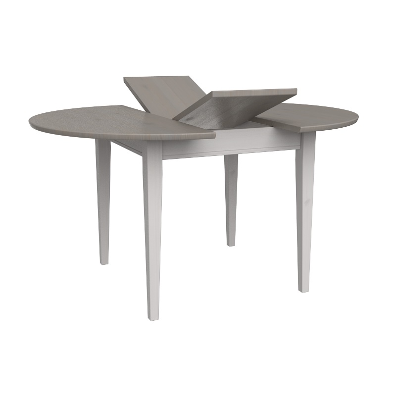 Стол обеденный раскладной Форест D110/145 серый 7012/бейц-масло. Массив сосны . Толщина столешницы 30 мм. В сложенном состоянии вставка располагается под столешницей. Диаметр стола в сложенном состоянии 110 см, в разложенном состоянии размер стола 110х1455 см.