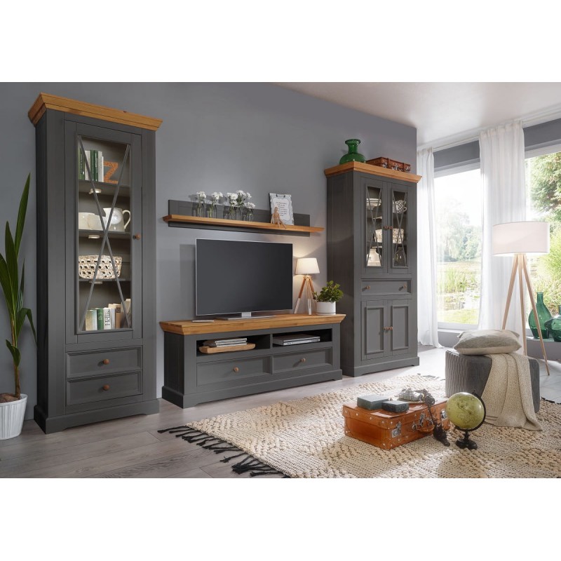 Тумба ТВ Форест 2 ящика серый 7012/бейц-масло