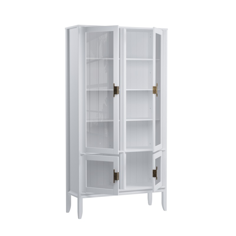 Шкаф для посуды Бридж широкий с 4-мя стеклянными дверями белый лак