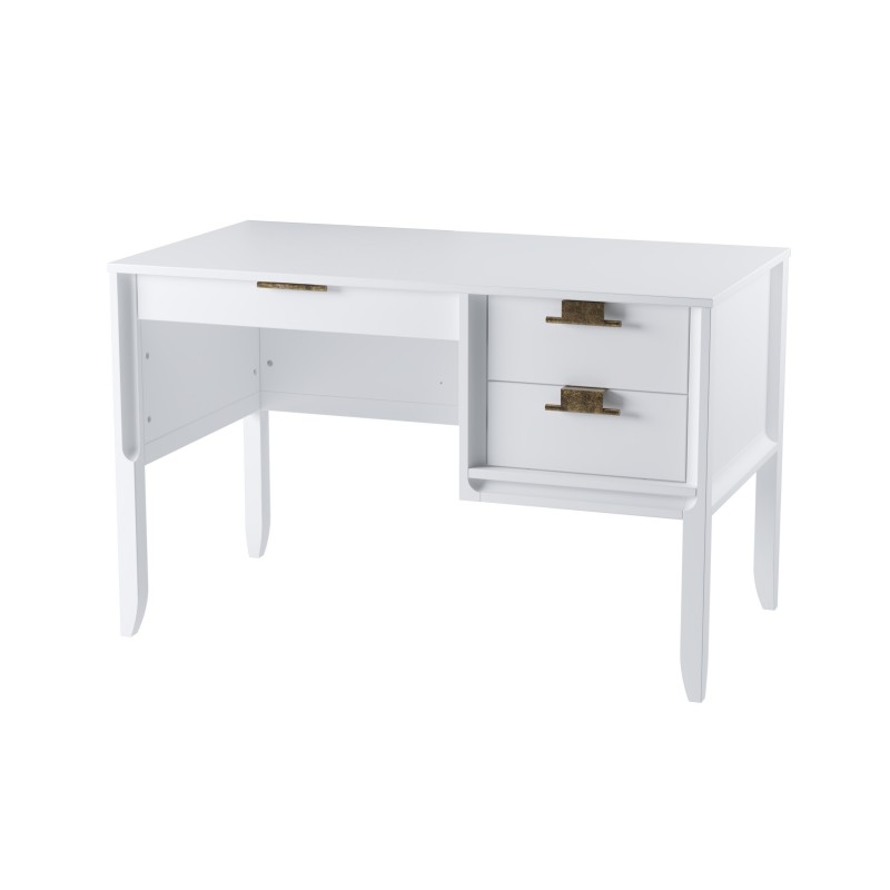 Стол письменный Бридж однотумбовый белый лак с 3-мя ящиками на шариковых направляющих с доводчиками. Стол можно собирать как варианте тумба справа, так и в варианте тумба слева. Задняя стенка стола выполнена из щита, стол можно ставить посередине помещения. Широкий ящик, расположенный над местом пользователя разделен внутри на 3 части для удобства хранения.