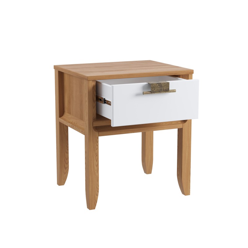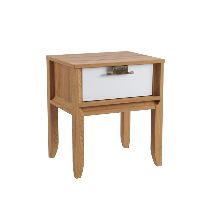 Тумба прикроватная Бридж с 1 ящиком на ножках браун/белый лак массив сосны.