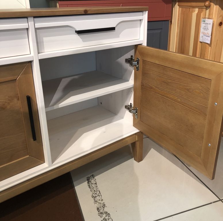 Корпус, фасады, полки и стенки ящиков изготовлены из массива сосны – прочного и долговечного натурального материала.