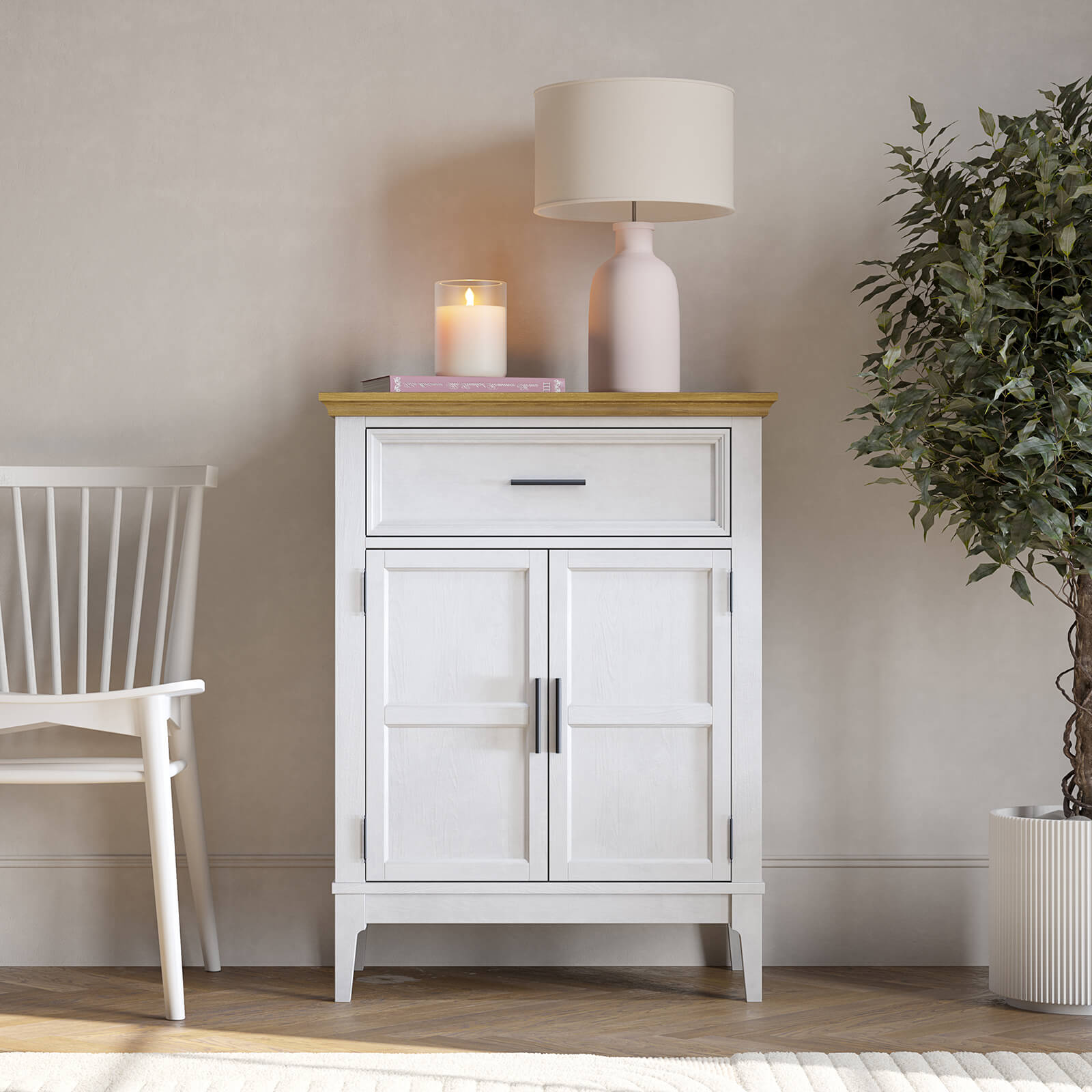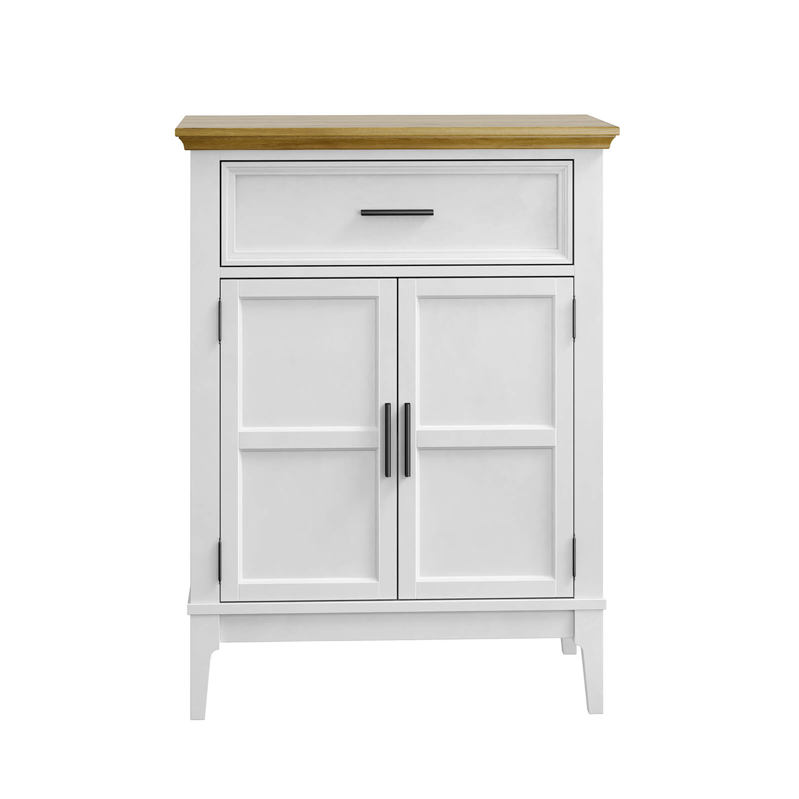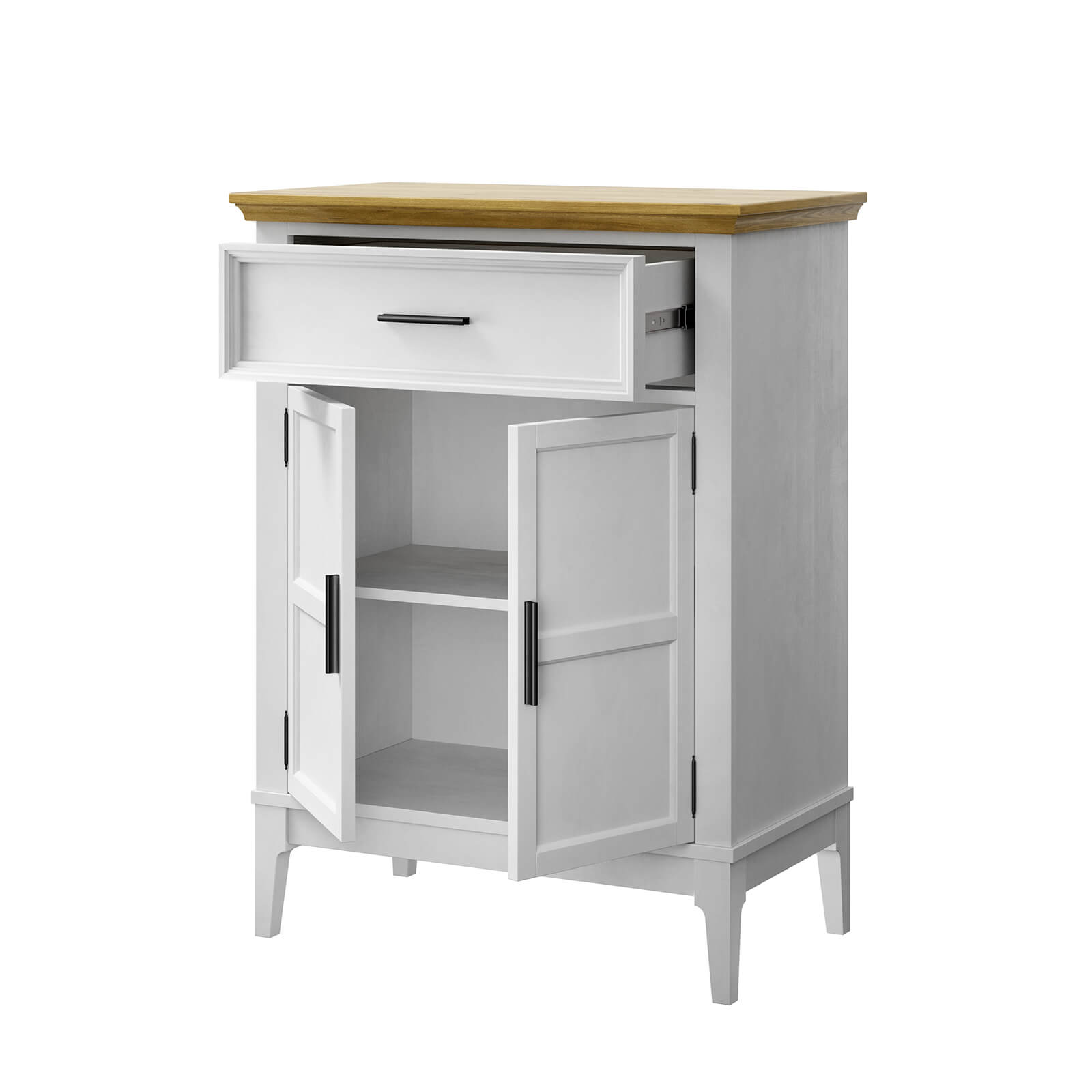 Тумба Квадро-С 21 массив сосны, покрытие - белый лак - антик 24. Две распашные двери и один ящик на телескопических шариковых направляющих.
