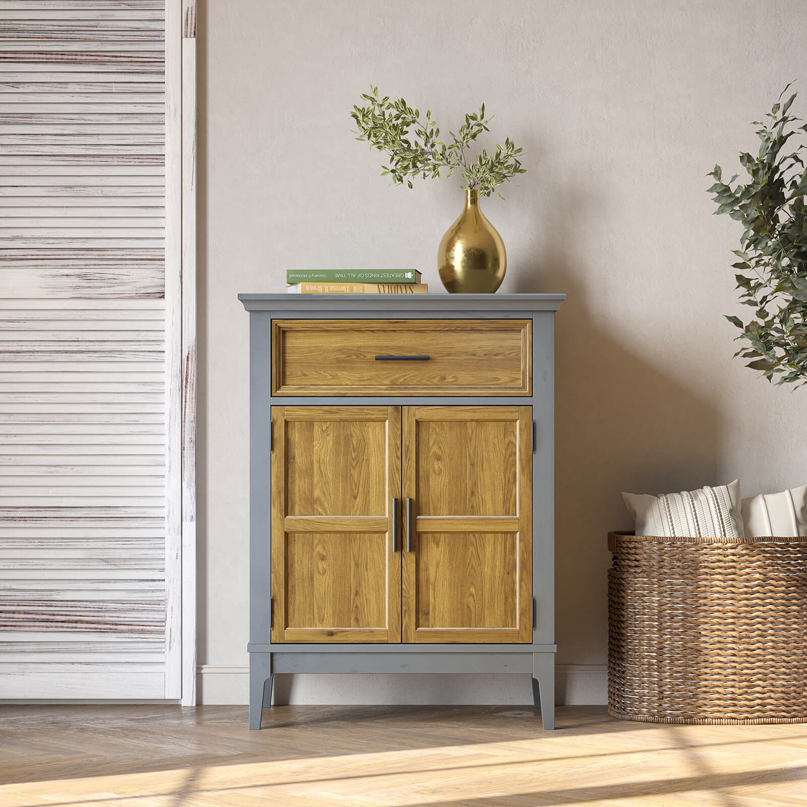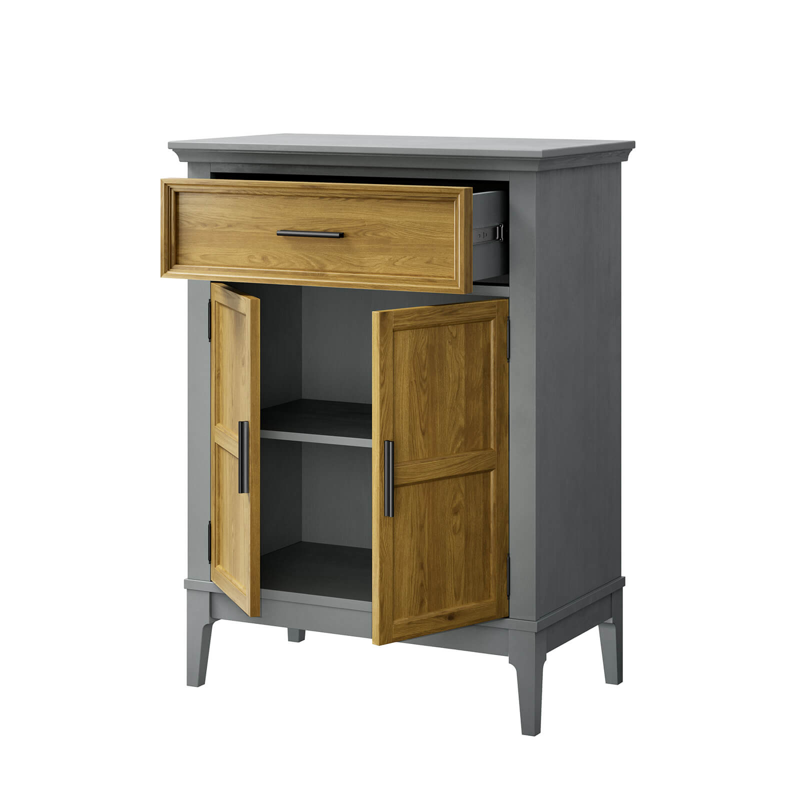 Тумба Квадро-С 21 серый 7042 - антик 24 массив сосны. Две распашные двери и один ящик на телескопических шариковых направляющих.