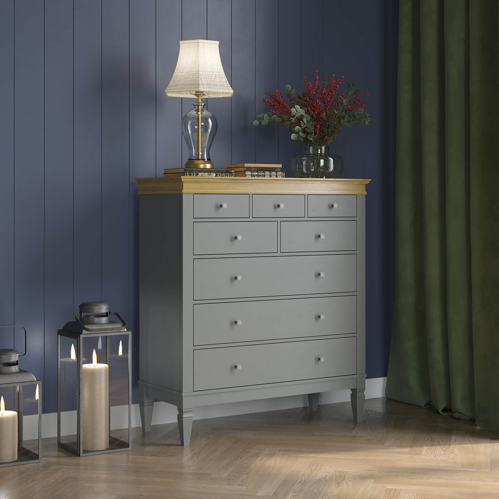 Комод Ольса-С 323 в цвете серый №7042 + антик №24