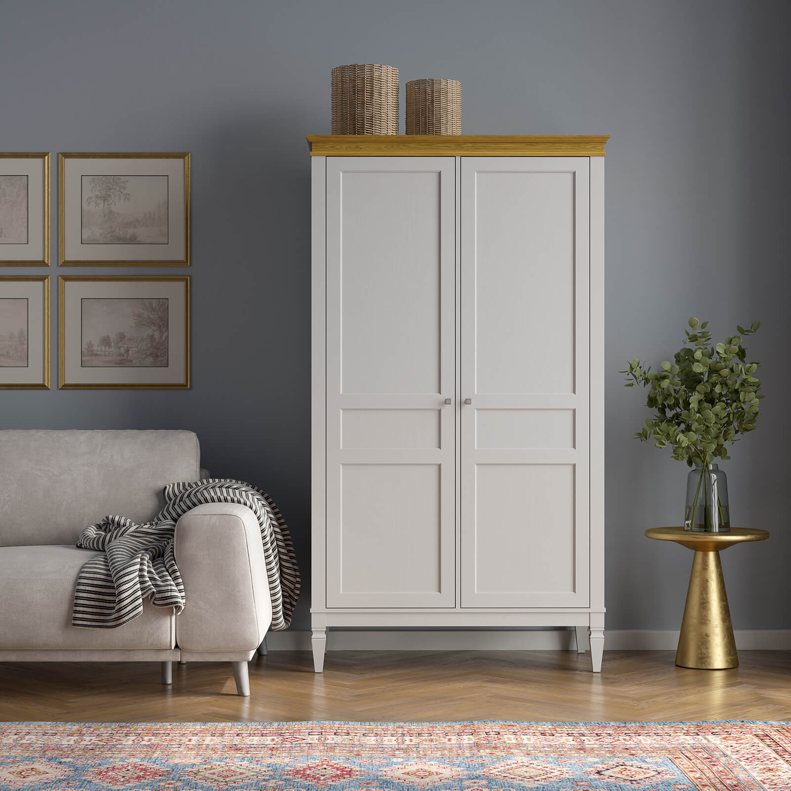 Шкаф для одежды Ольса-С 20 Белый лак + антик №24