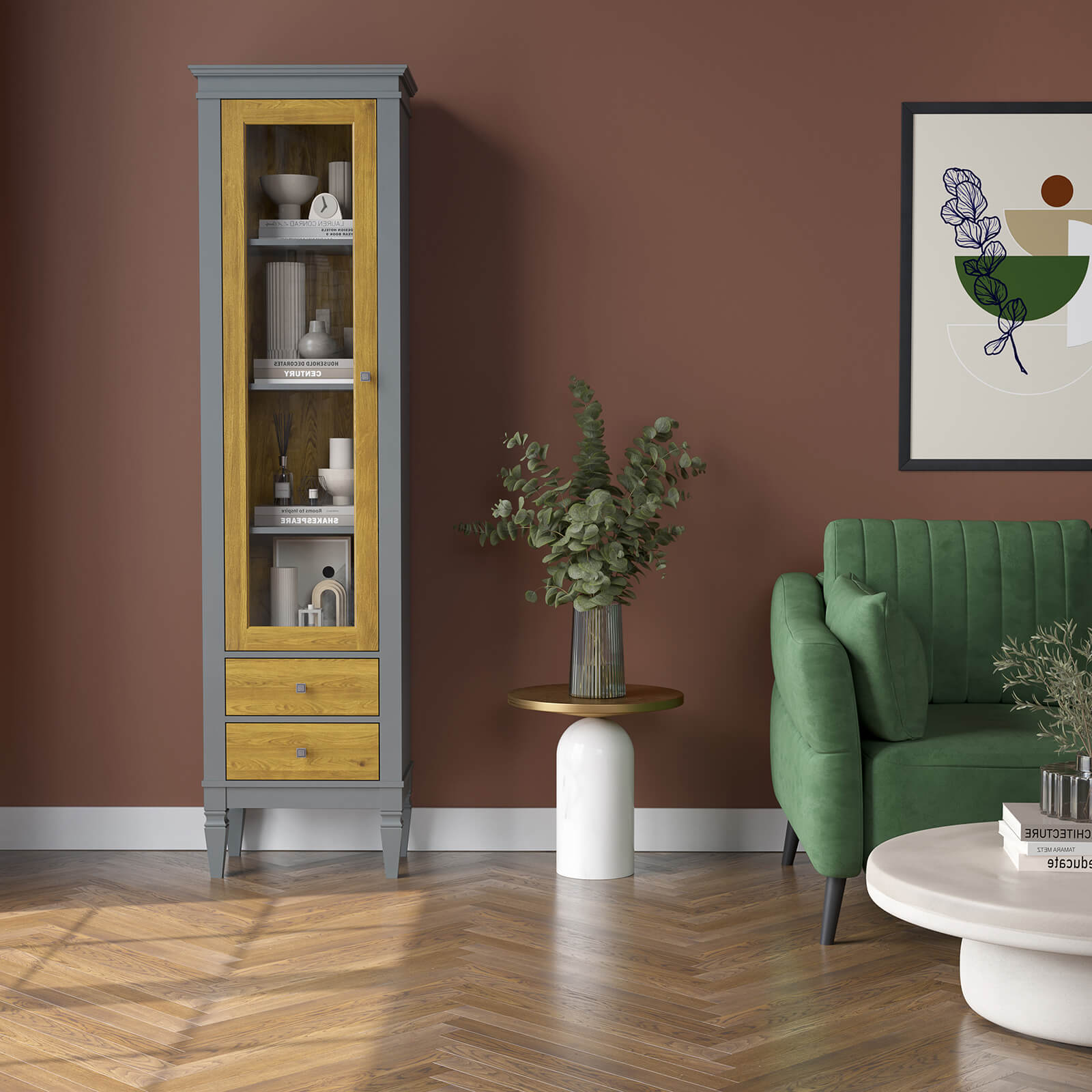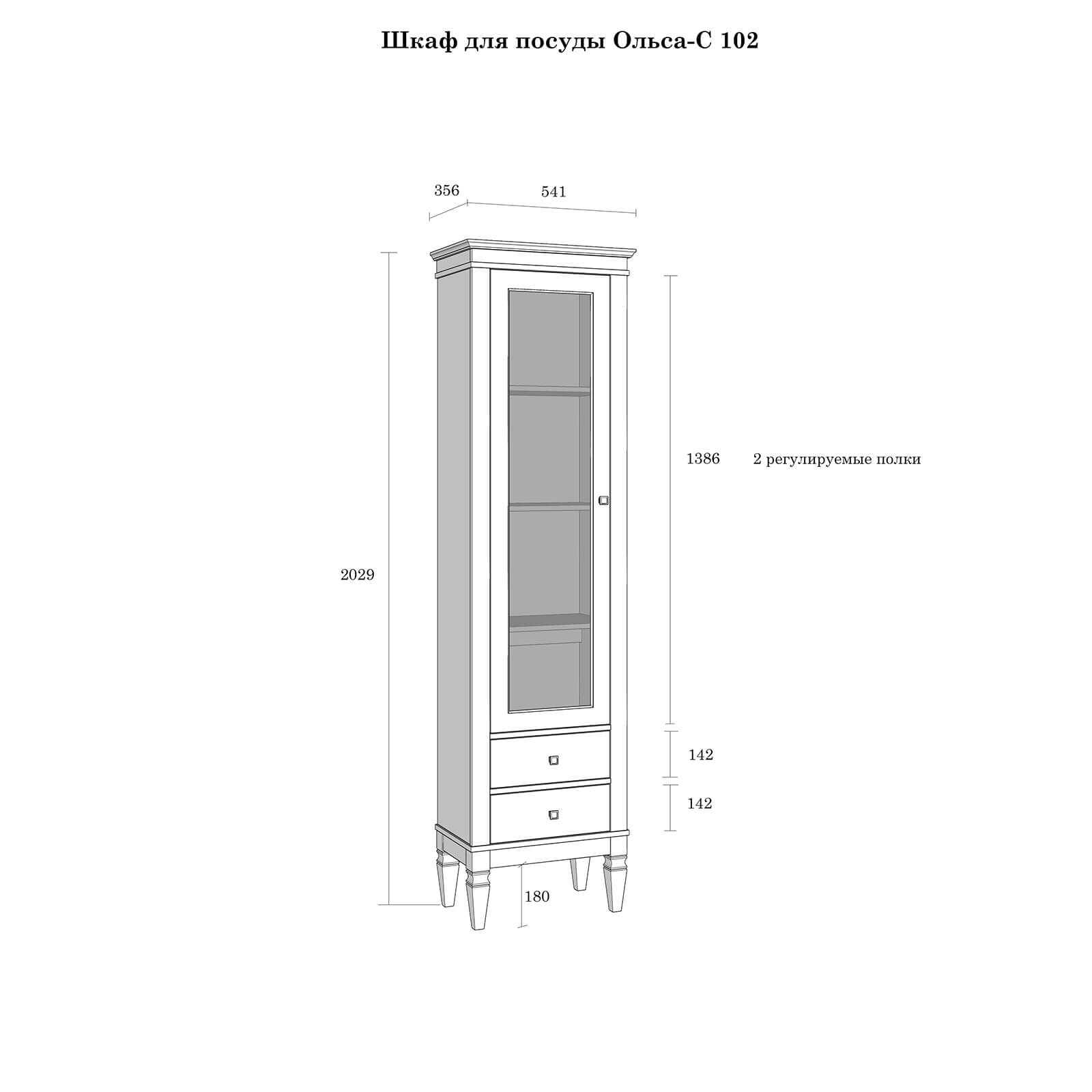Шкаф для посуды Ольса-С 102 Л серый №7042 + антик №24 для гостиной.
