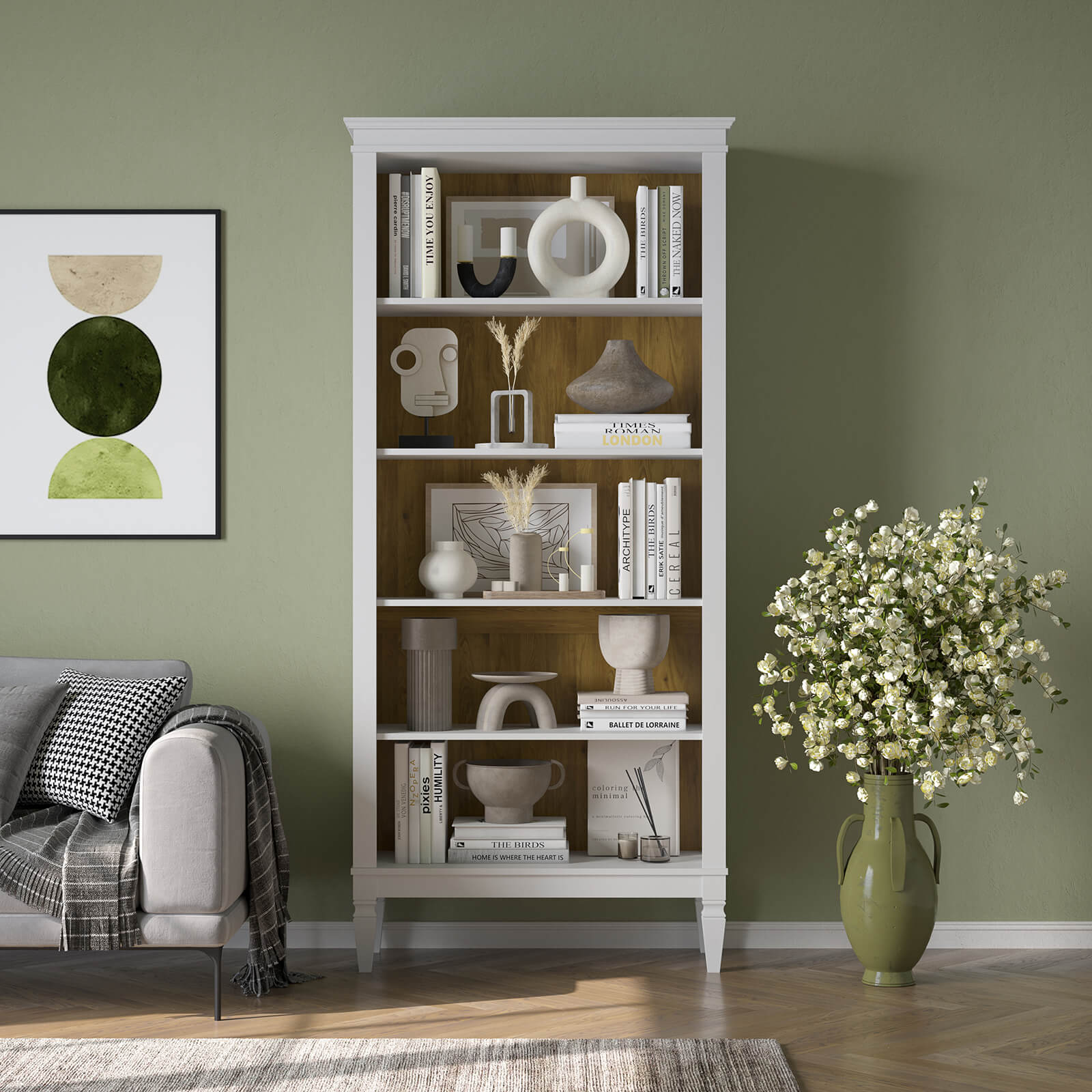 Стеллаж Ольса-С 200 белый лак для гостиной или кабинета.