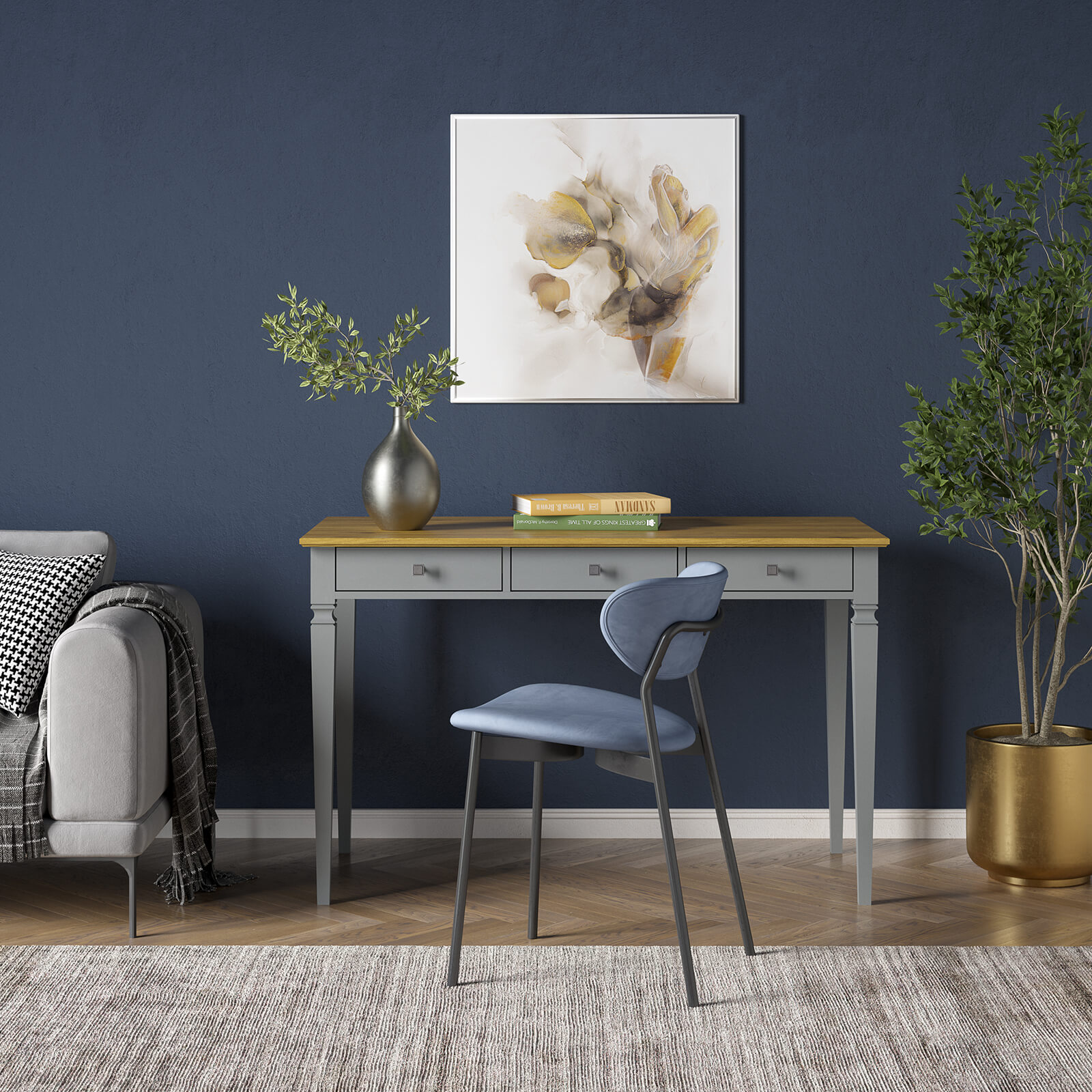 Стол письменный Ольса-С 003 серый №7042 + антик №24 - 3 ящика - изготовлен из массива сосны.