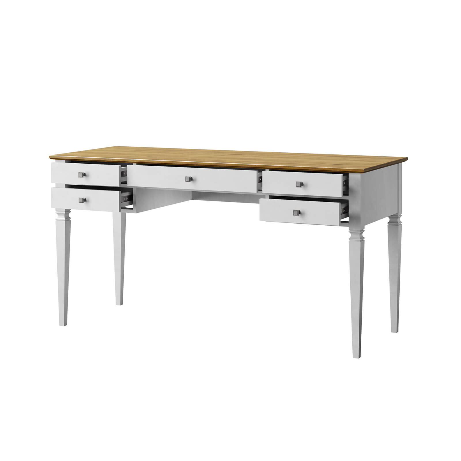 Стол письменный Ольса-С 005 белый лак + антик №24 - 5 ящиков  - изготовлен из массива сосны.