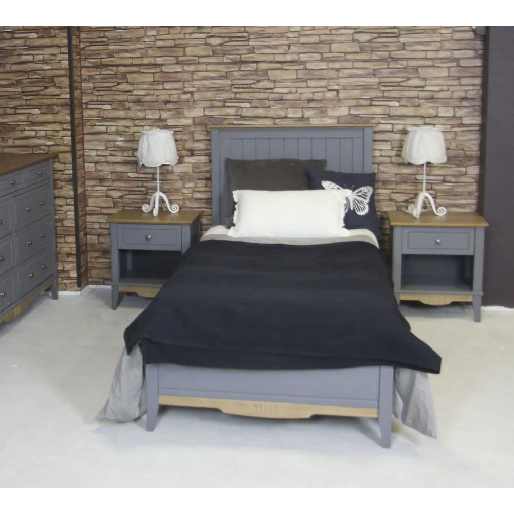 Кровать 90х200 Пенни (без настила) серый 7046/антик 24 под матрас 90 на 200 см.