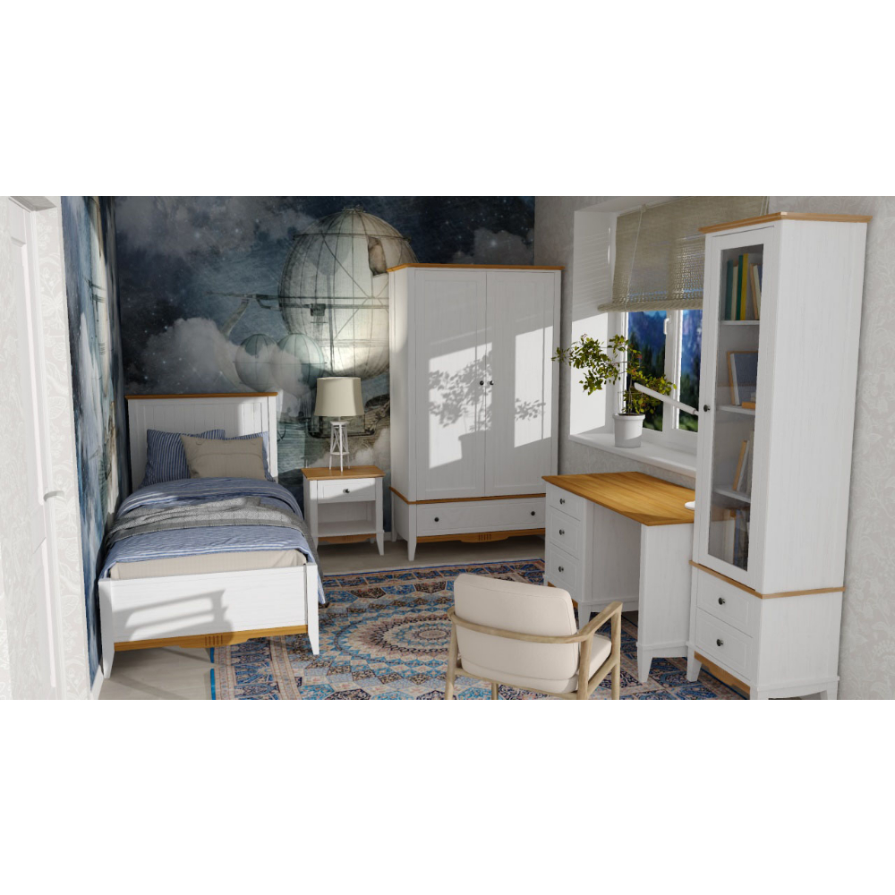 Кровать односпальная Пенни белый воск / антик 24