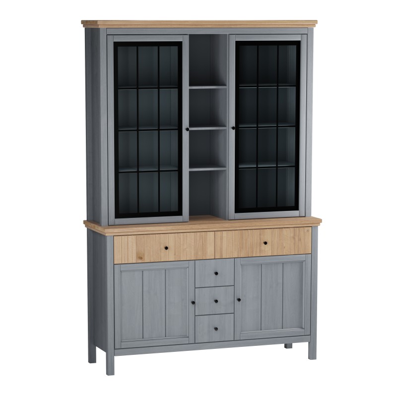 Буфет Сканди 2 стеклянные двери 2 глухие двери  и ящики серый 7046/антик фото