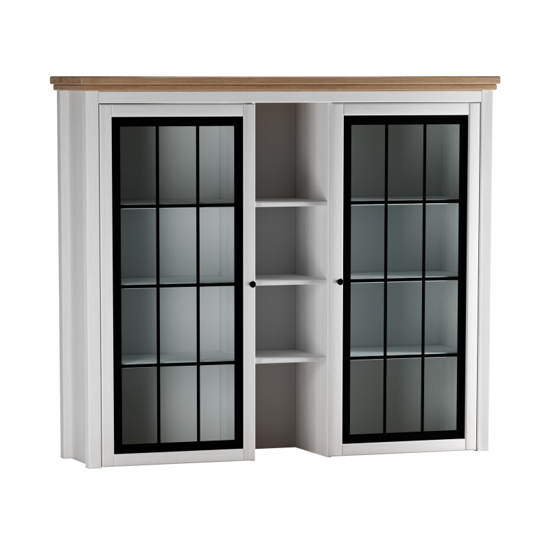 Надстройка буфета Сканди 2 стеклянные двери белый воск/антик.