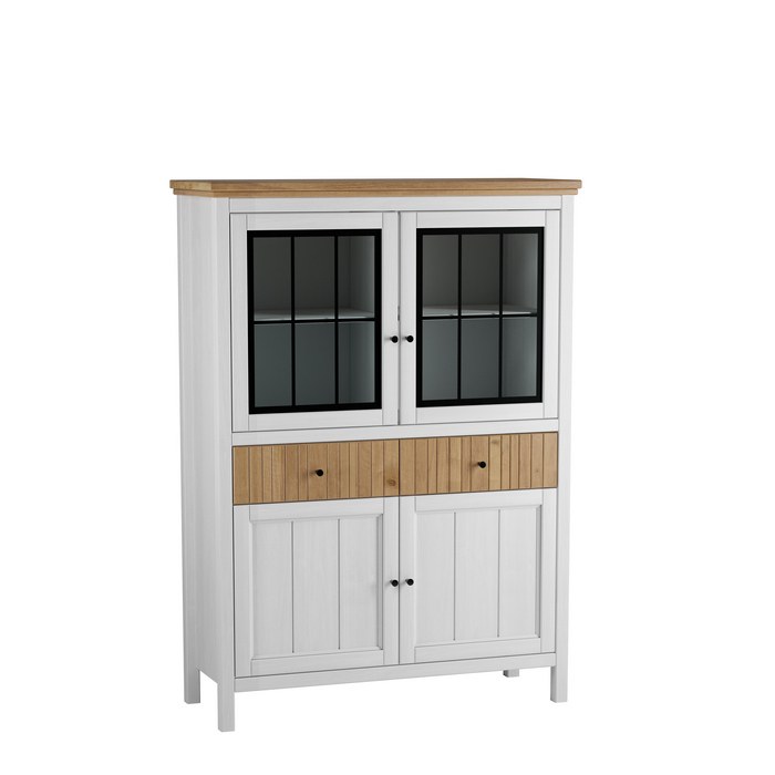 Тумба Сканди 222СТЧ стеклянные двери белый воск/антик