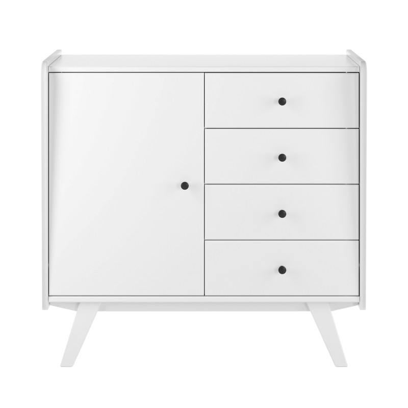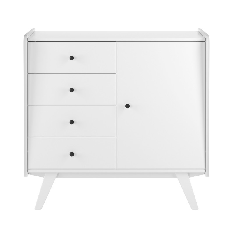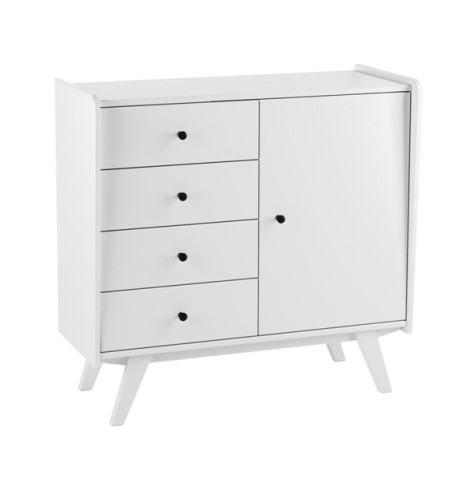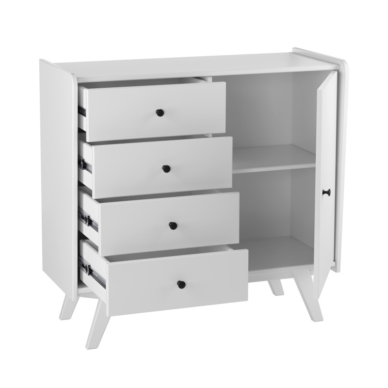 Тумба Винтаж 1 дверь 4 ящика белый лак. Комод / тумба имеет 4 ящика на шариковых направляющих с доводчиками и 1 дверку. За дверкой расположена полка. Петли дверки с доводчиками