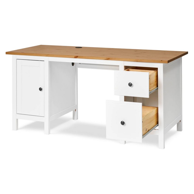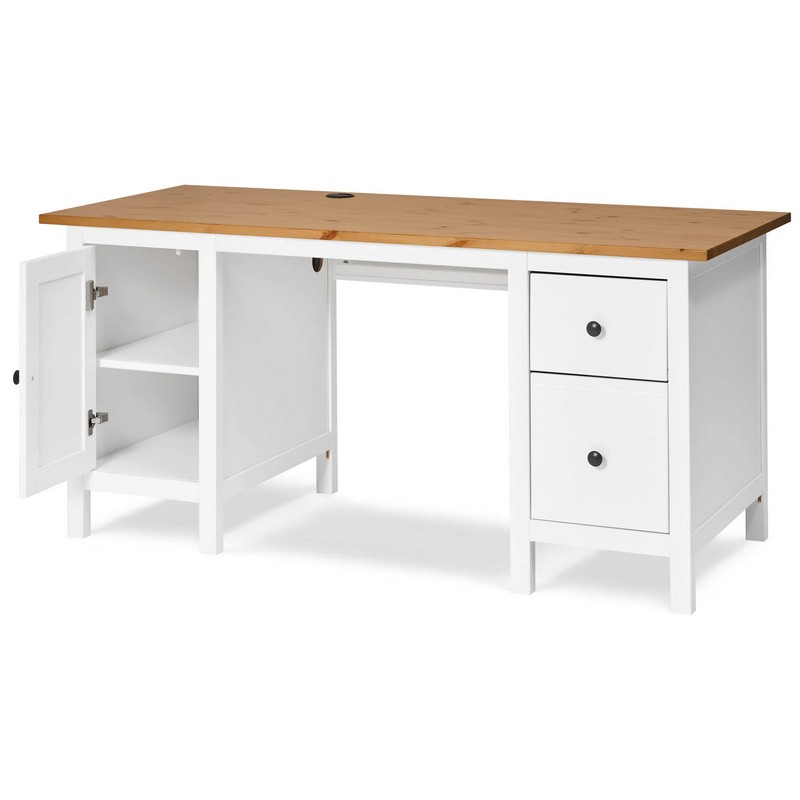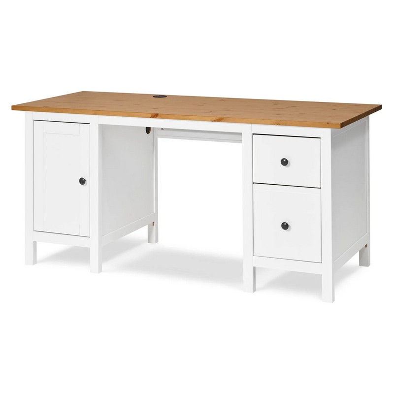 Двух тумбовый Кымор Хемнэс письменный стол, массив сосны белый /светло-коричневый.