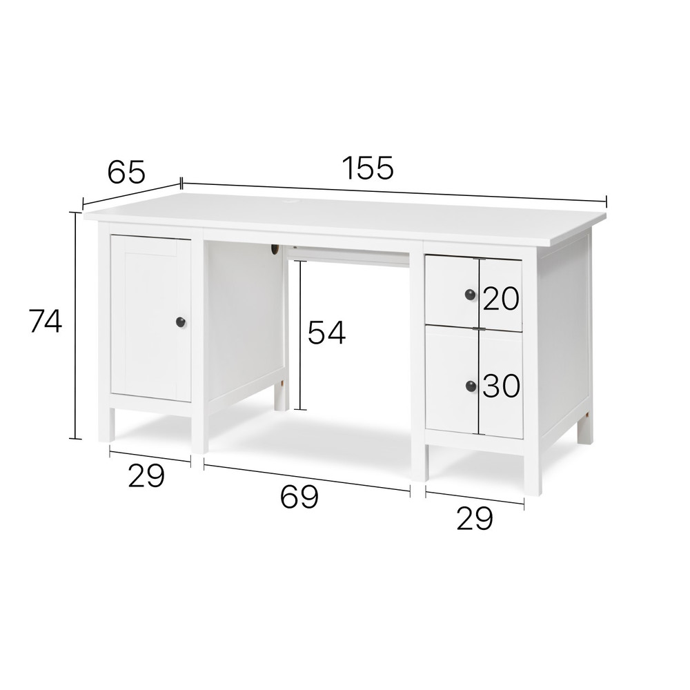 Двух тумбовый Кымор Хемнэс письменный стол, массив сосны белый.
