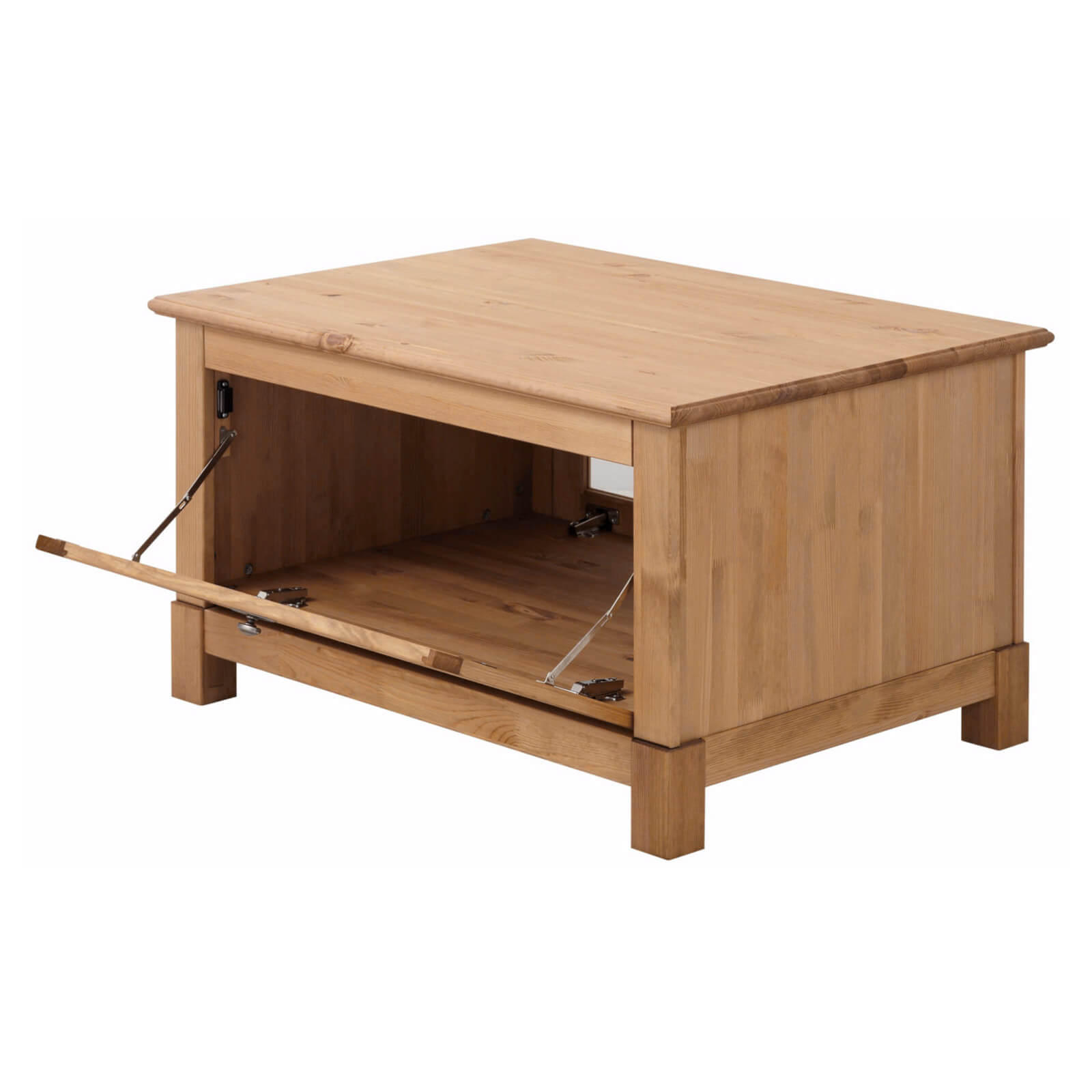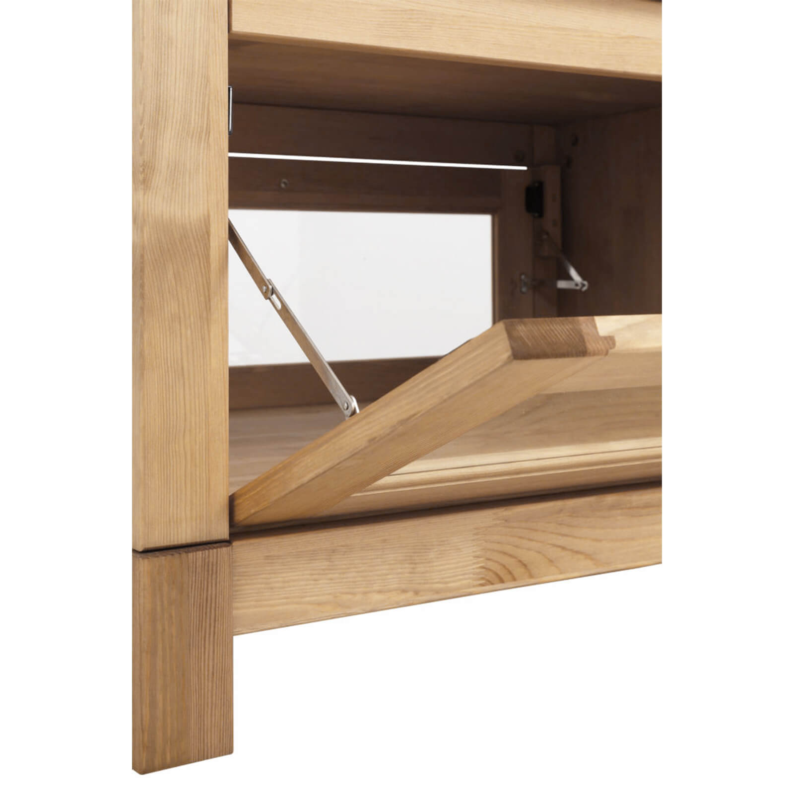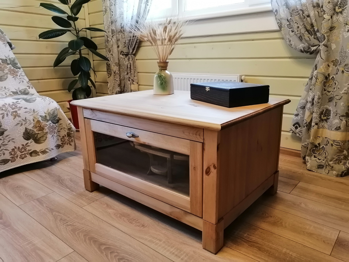 Специальные механизмы открывания двух дверок позволяют осуществлять доступ к содержимому кофейного стола с разных сторон комнаты.