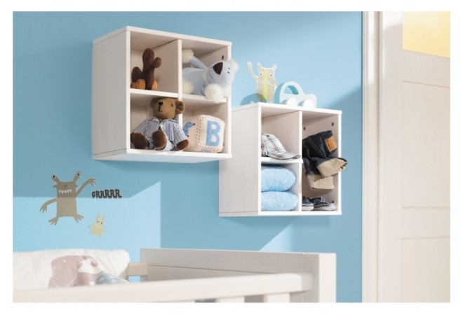 Квадратный стеллаж коллекции мебели Сиело, который устанавливается на стену, задняя стенка так же выполнена из массива сосны.