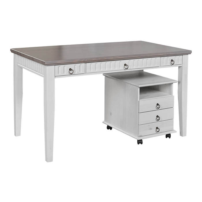 Стол письменный Хельсинки-03 Белый воск+серый с 3 ящиками различной вместимости на шариковых направляющих позволяют хранить всё необходимое для работы.