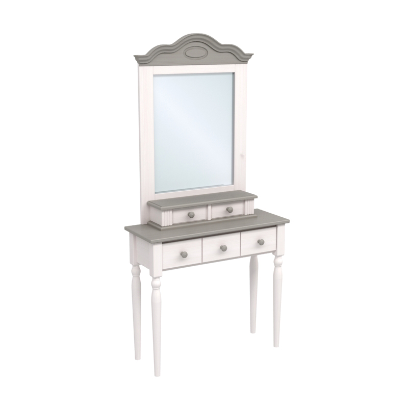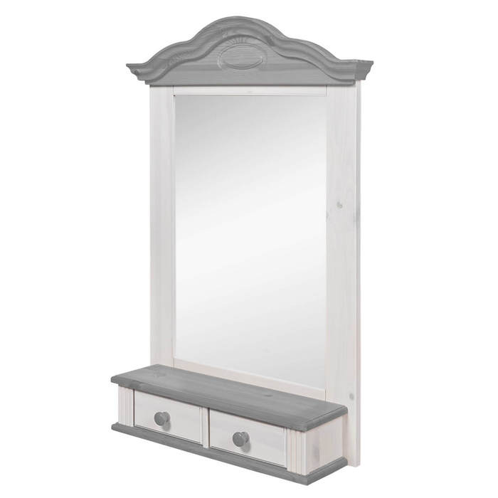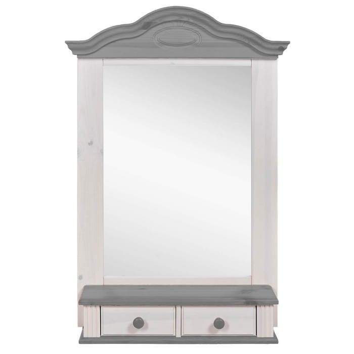 зеркало Синди Белый воск+серый с двумя выдвижными ящиками для хранения личных вещей.