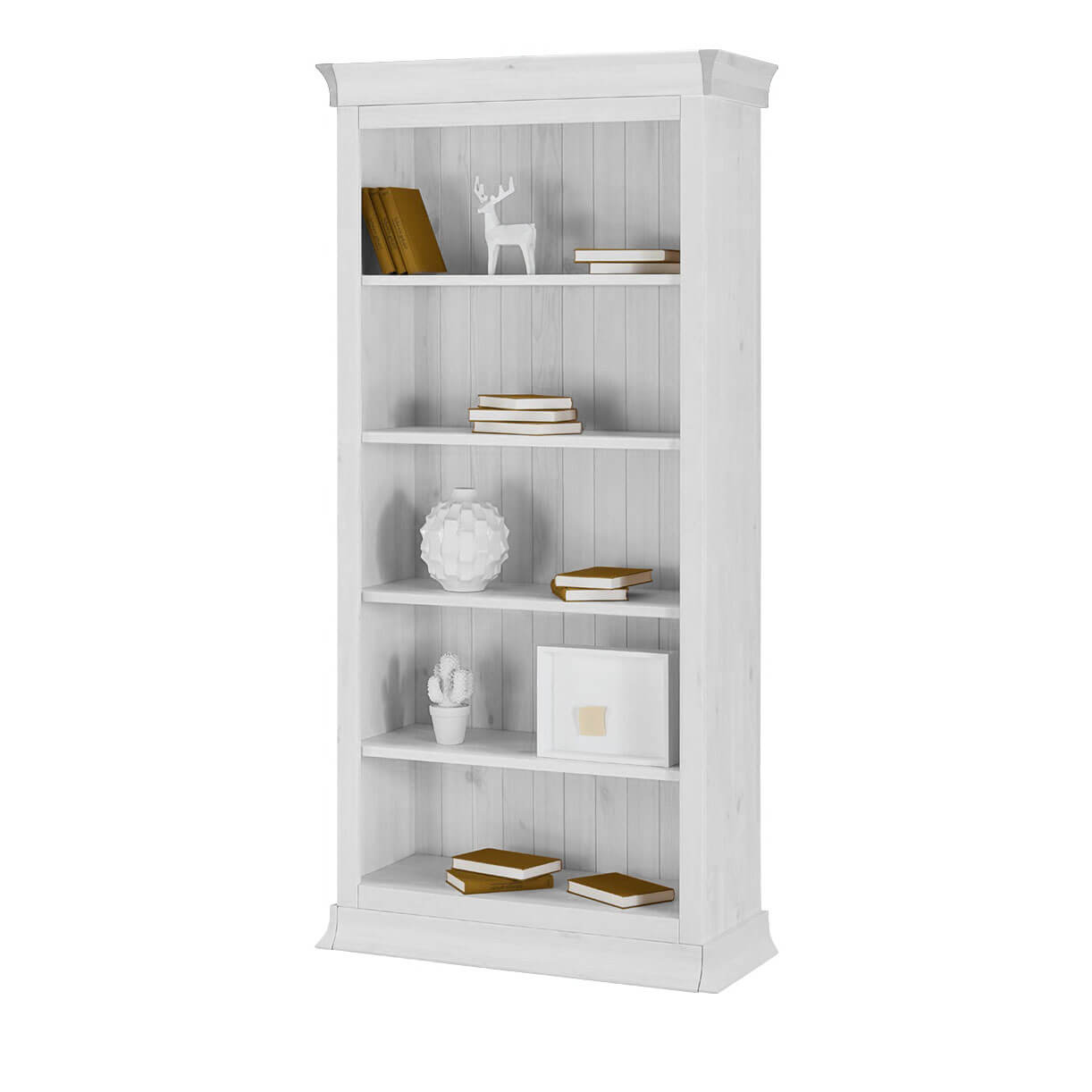 Вместительный деревянный Стеллаж Бостон-1000 белый воск из массива сосны с регулируемыми по высоте полками. Можно использовать как книжный шкаф. А составив несколько стеллажей вместе, можно построить целую библиотеку.