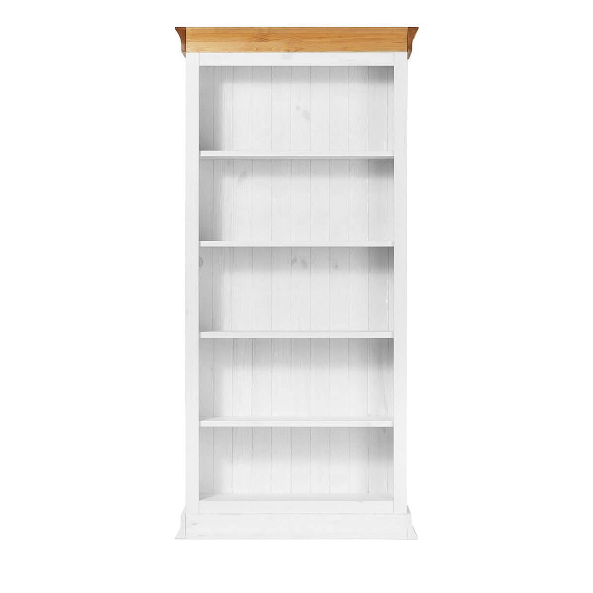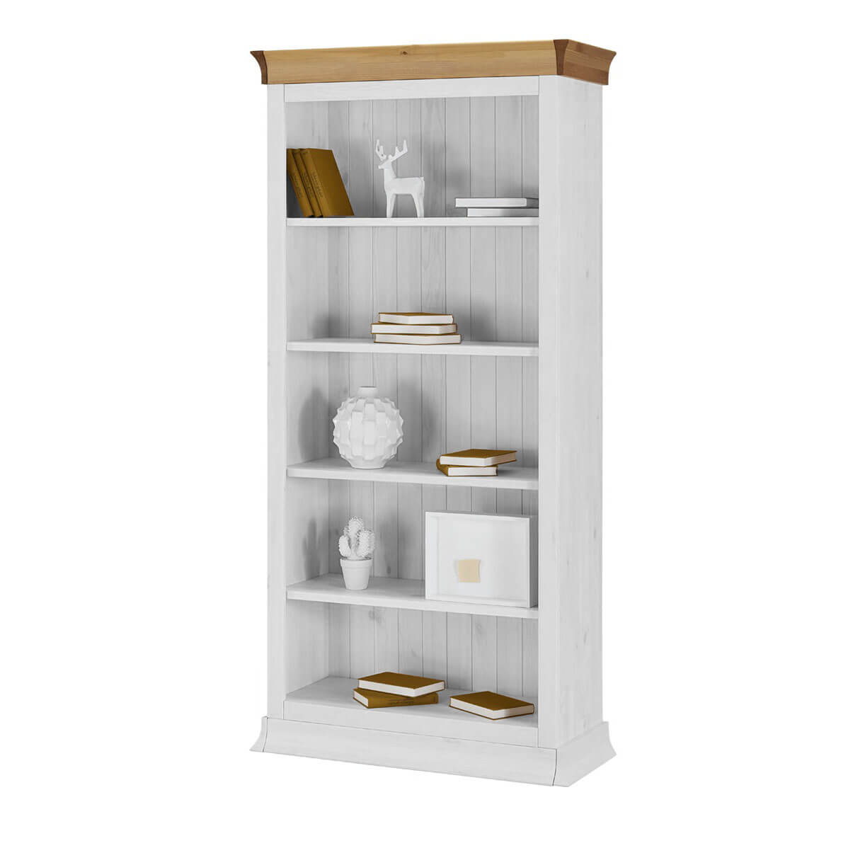 Вместительный деревянный Стеллаж Бостон-1000 белый воск+антик из массива сосны с регулируемыми по высоте полками. Можно использовать как книжный шкаф. А составив несколько стеллажей вместе, можно построить целую библиотеку.