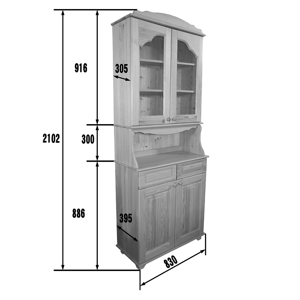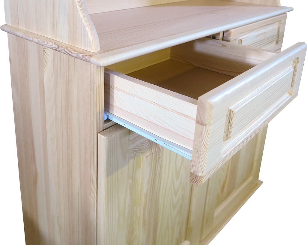 Недорогой, но качественный деревянный буфет для кухни Владимир 2-х дверный из массива сосны в лаке.
