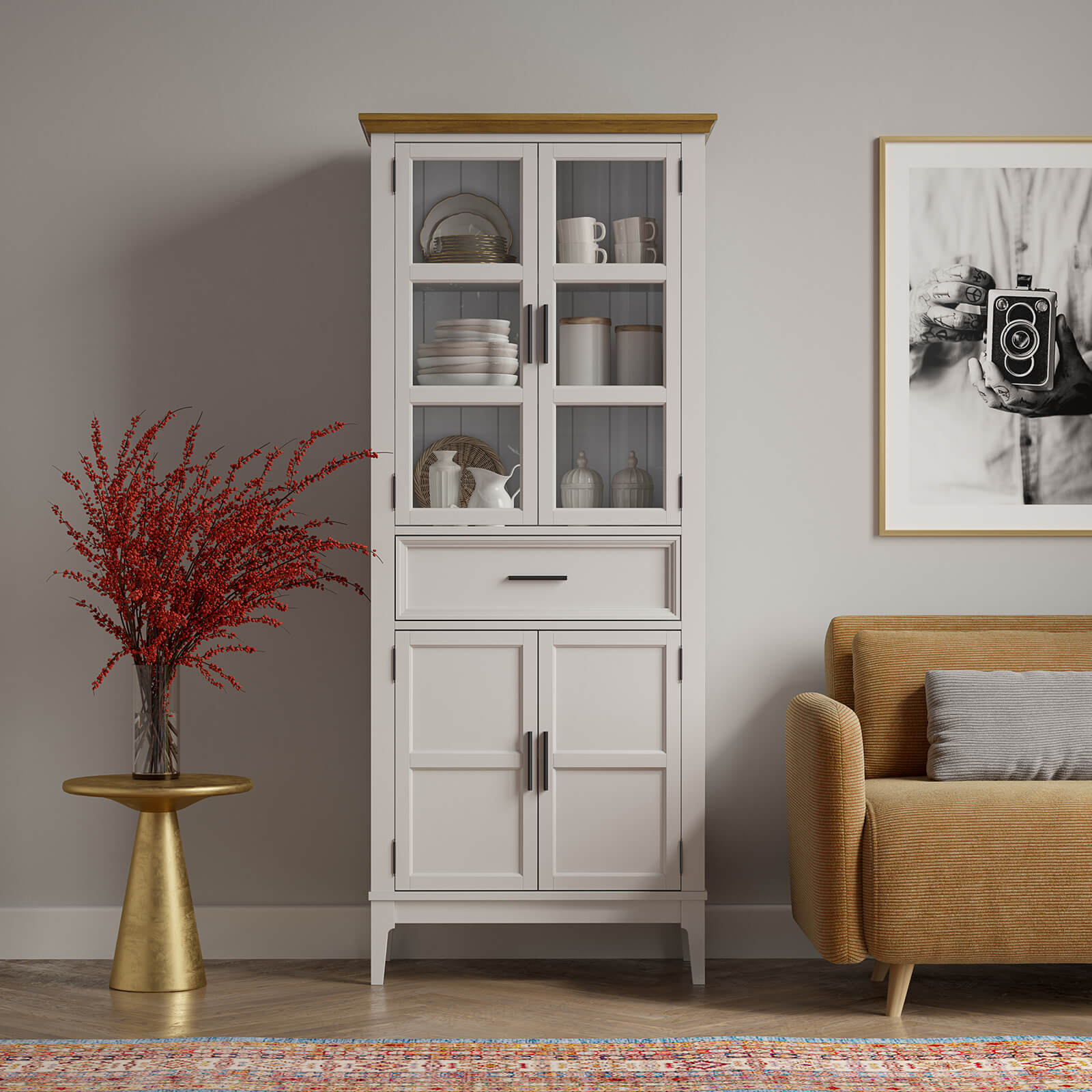 Шкаф для посуды Квадро-С 221-185 белый лак-антик 24