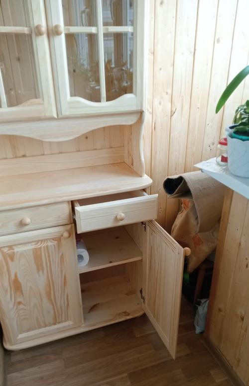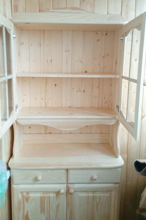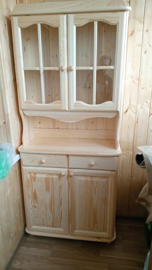 Двухдверный буфет Норд 100 - шкаф для посуды из массива сосны в бесцветном лаке. Задняя стенка буфета из деревянной вагонки.