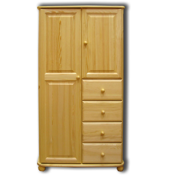 Невысокий комбинированный шкаф Норд 124 массив сосны в лаке - за большой дверью - штанга для вешалок, за малой дверкой - полки.