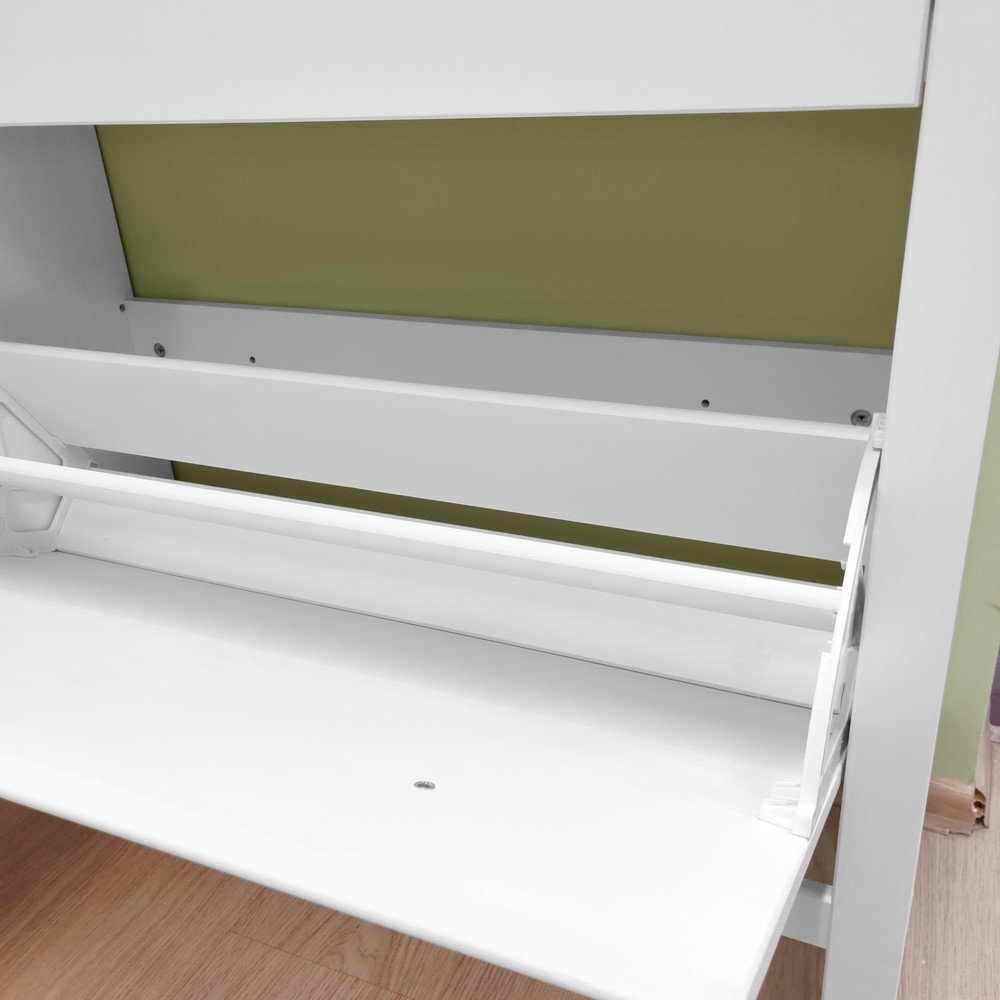Имеет две секции для хранения обуви. Верхняя секция содержит внутреннюю перегородку для размещения невысокой обуви. Нижняя секция без внутренней перегородки.