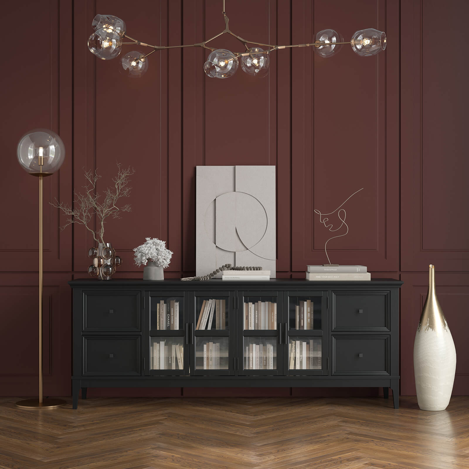 Четыре распашные стеклянные дверцы.