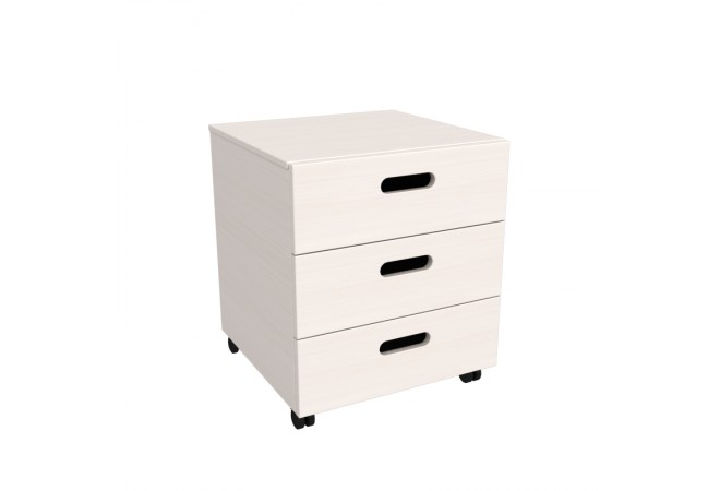 Деревянная тумба в белом воске из массива сосны под письменный стол Сиело, три ящика на роликовых направляющих.