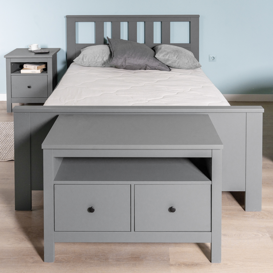 САГА кровать двойная 140х200 серая