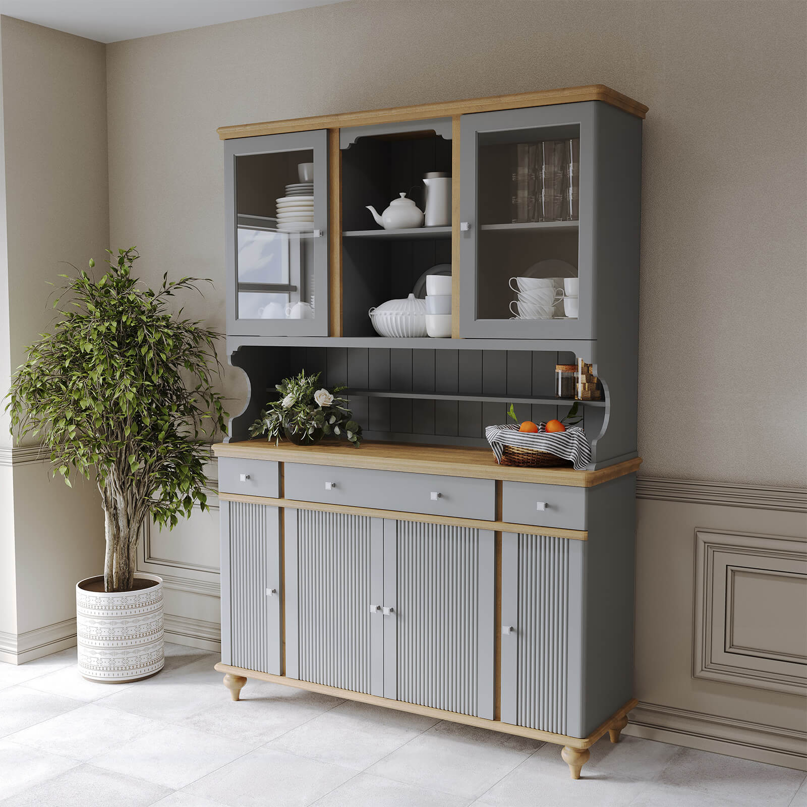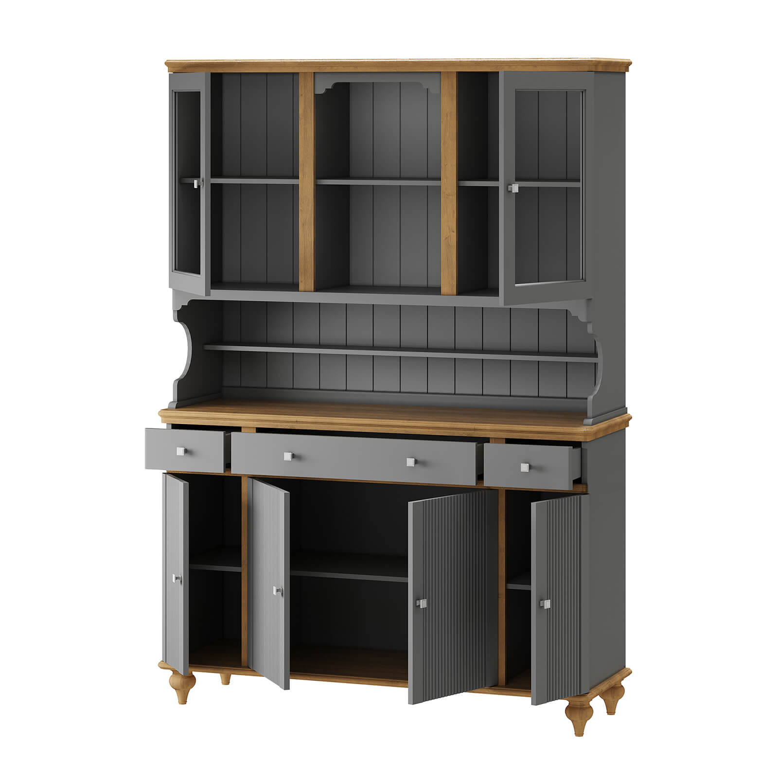 Буфет Рандеву 432 МАССИВ СОСНЫ серый 7042 + антик №24