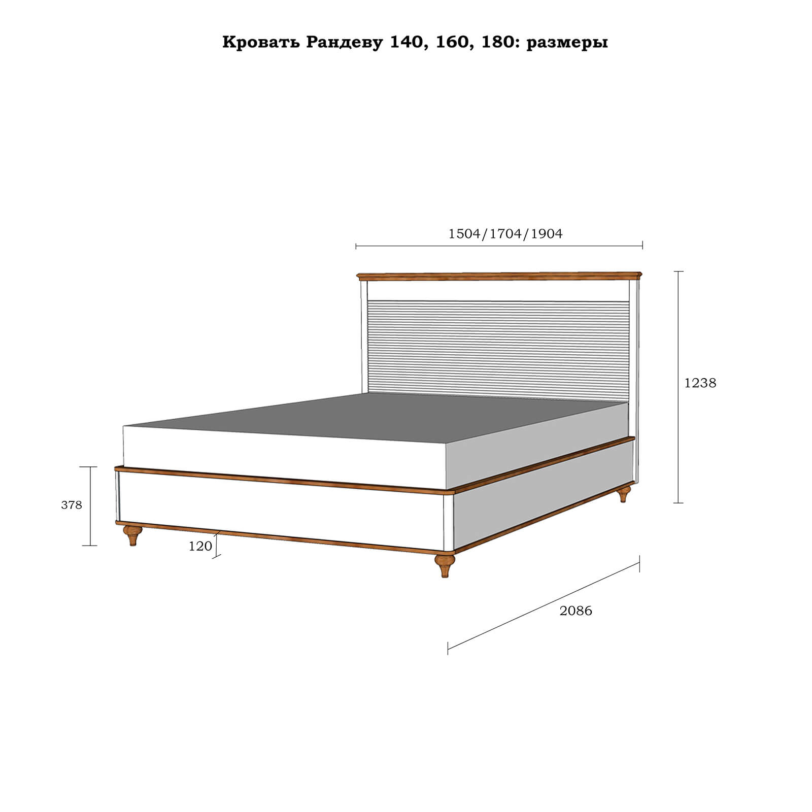 Кровать Рандеву-140 МАССИВ СОСНЫ Белый лак + антик №24. ( без матраса)